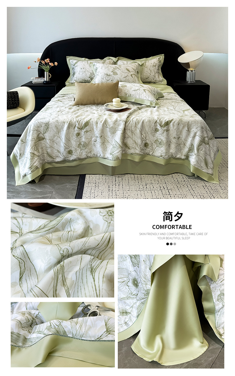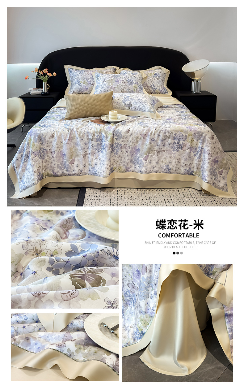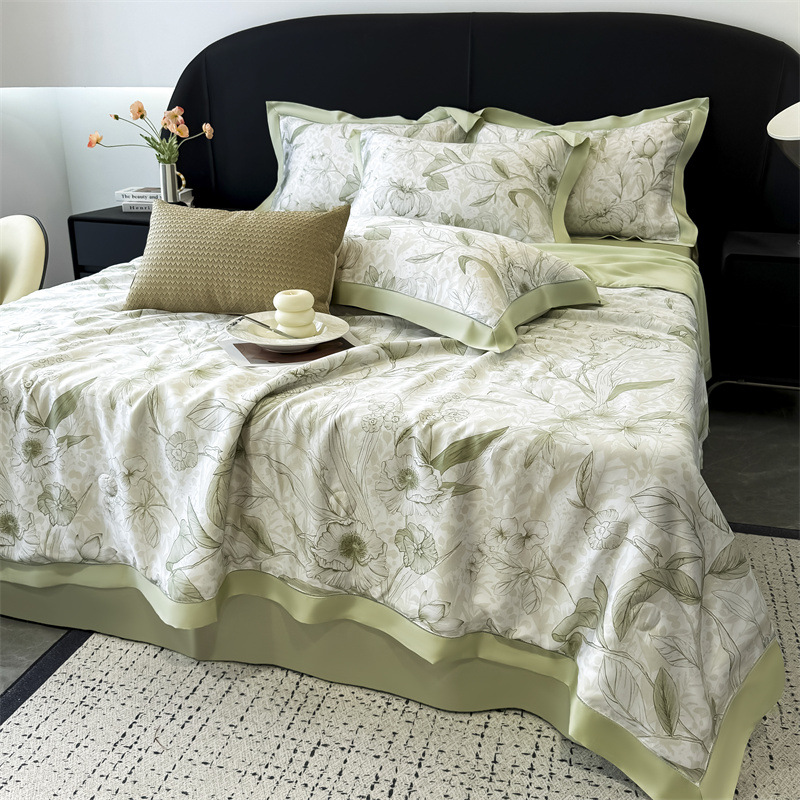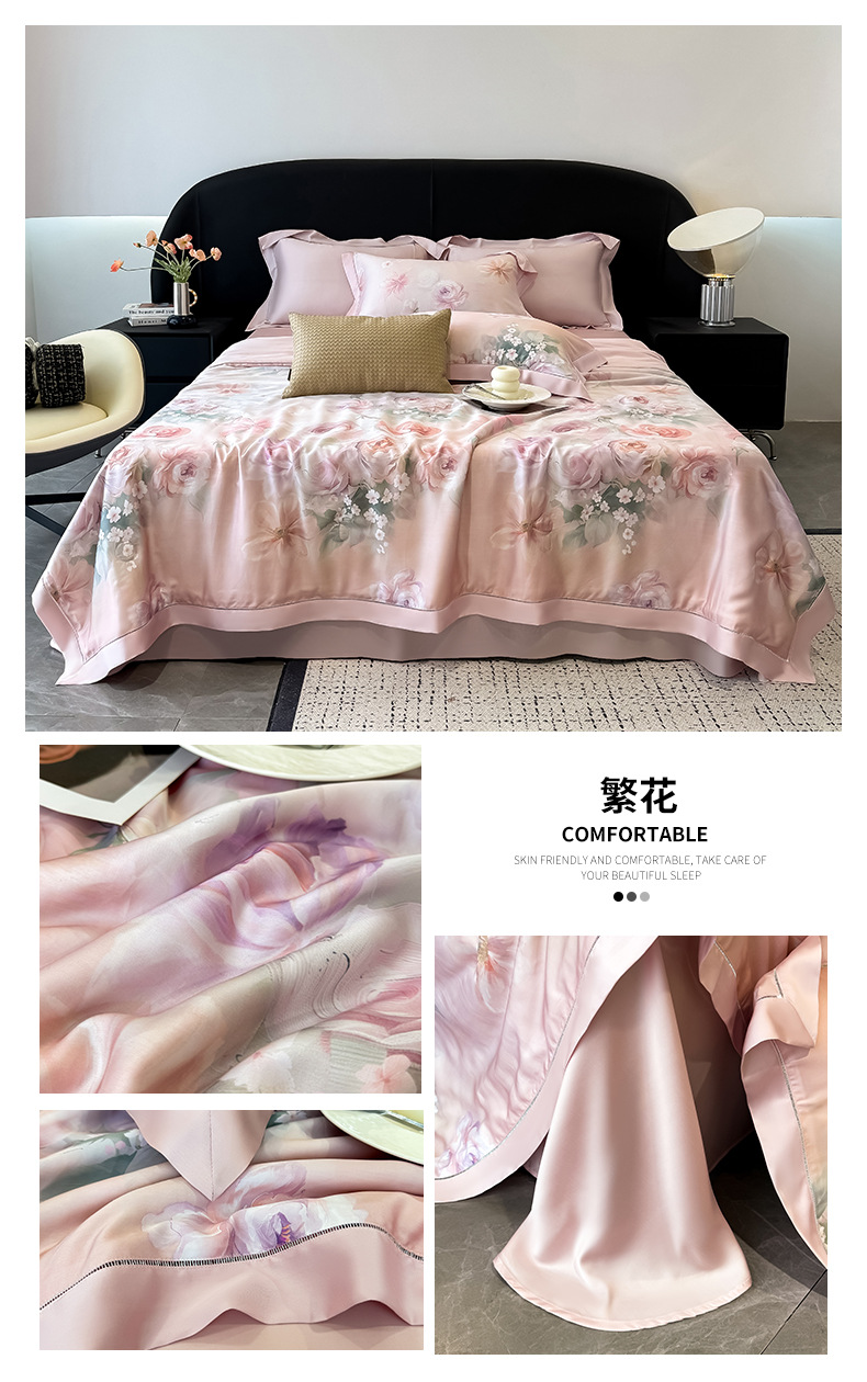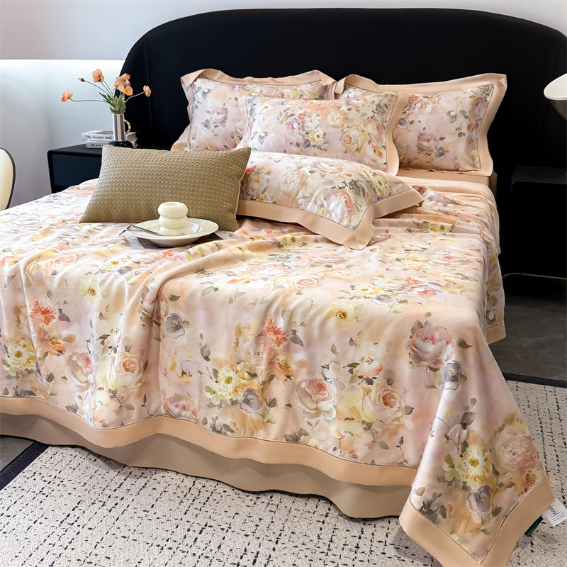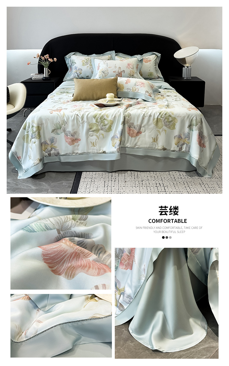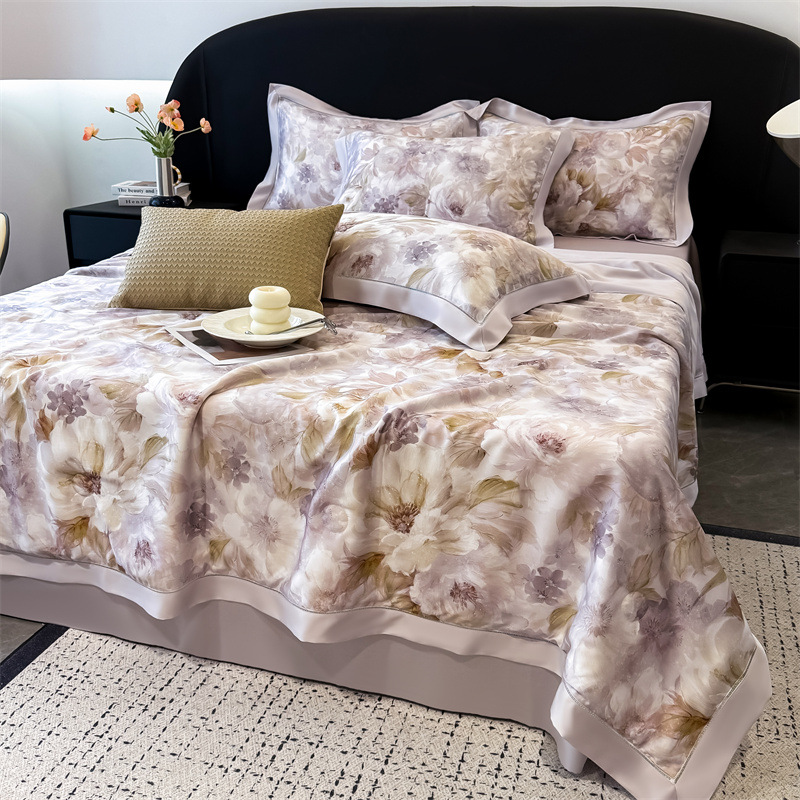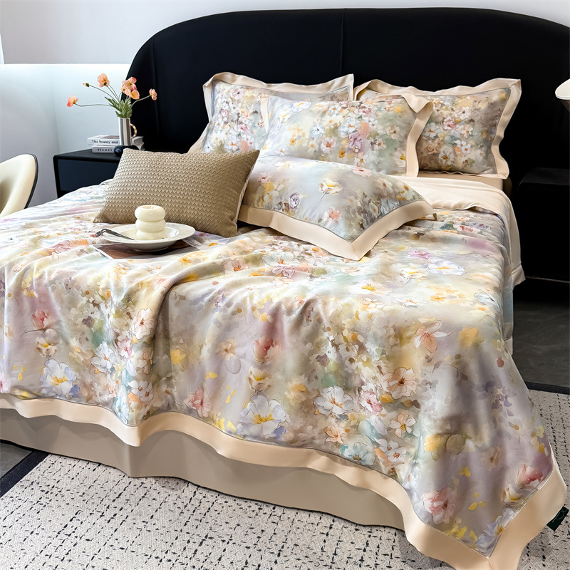 Lyocell 양면 Lanjing Tencel 여름 이불 에어컨 이불 여름 시원한 이불 4 조각 여름 잠자는 벌거 벗은 얼음 실크 얇은 이불