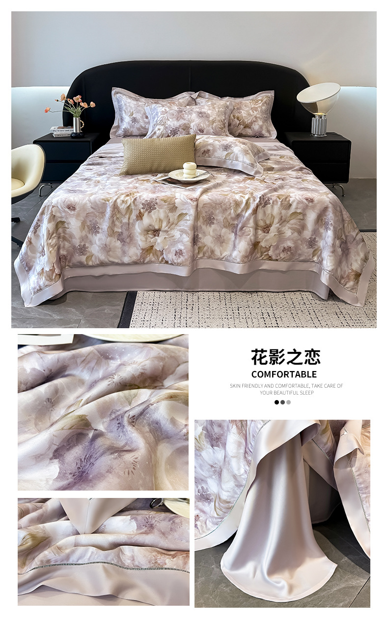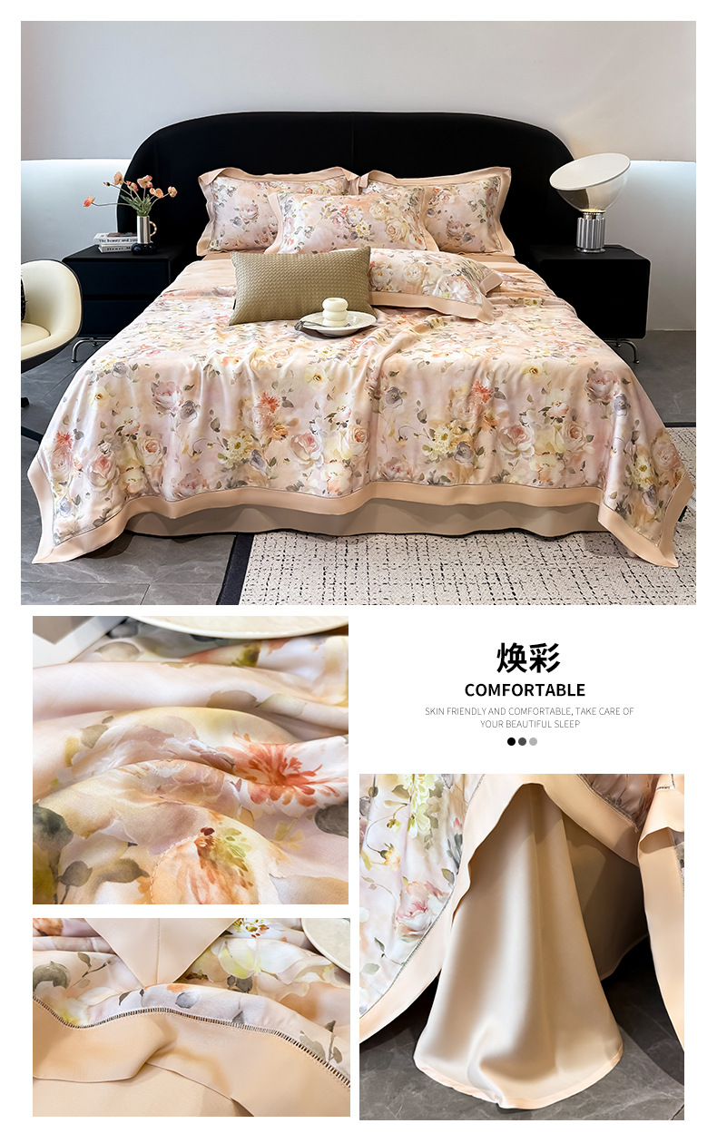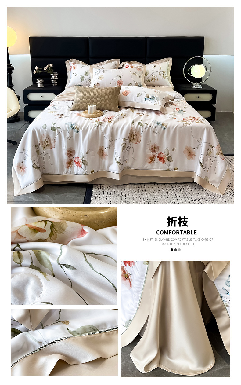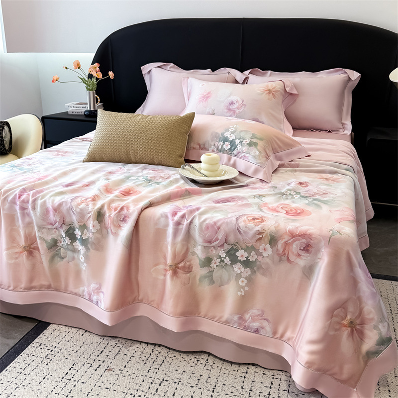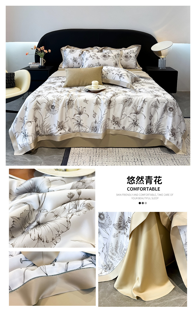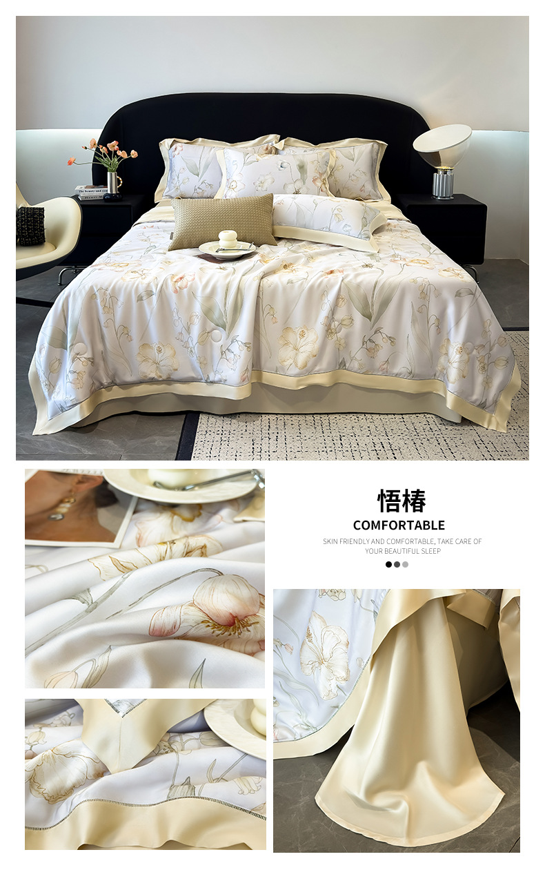 Lyocell 양면 Lanjing Tencel 여름 이불 에어컨 이불 여름 시원한 이불 4 조각 여름 잠자는 벌거 벗은 얼음 실크 얇은 이불