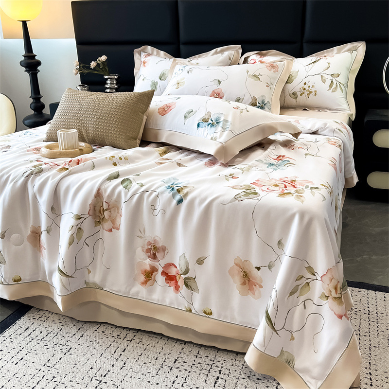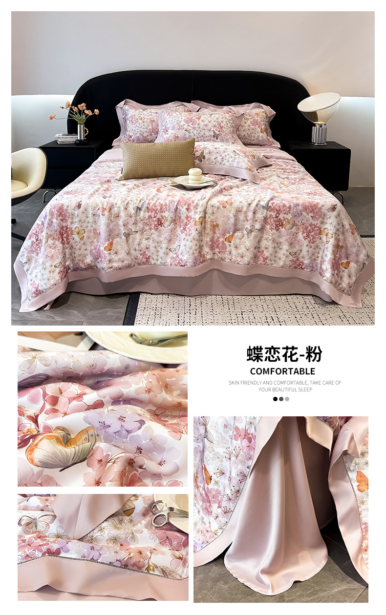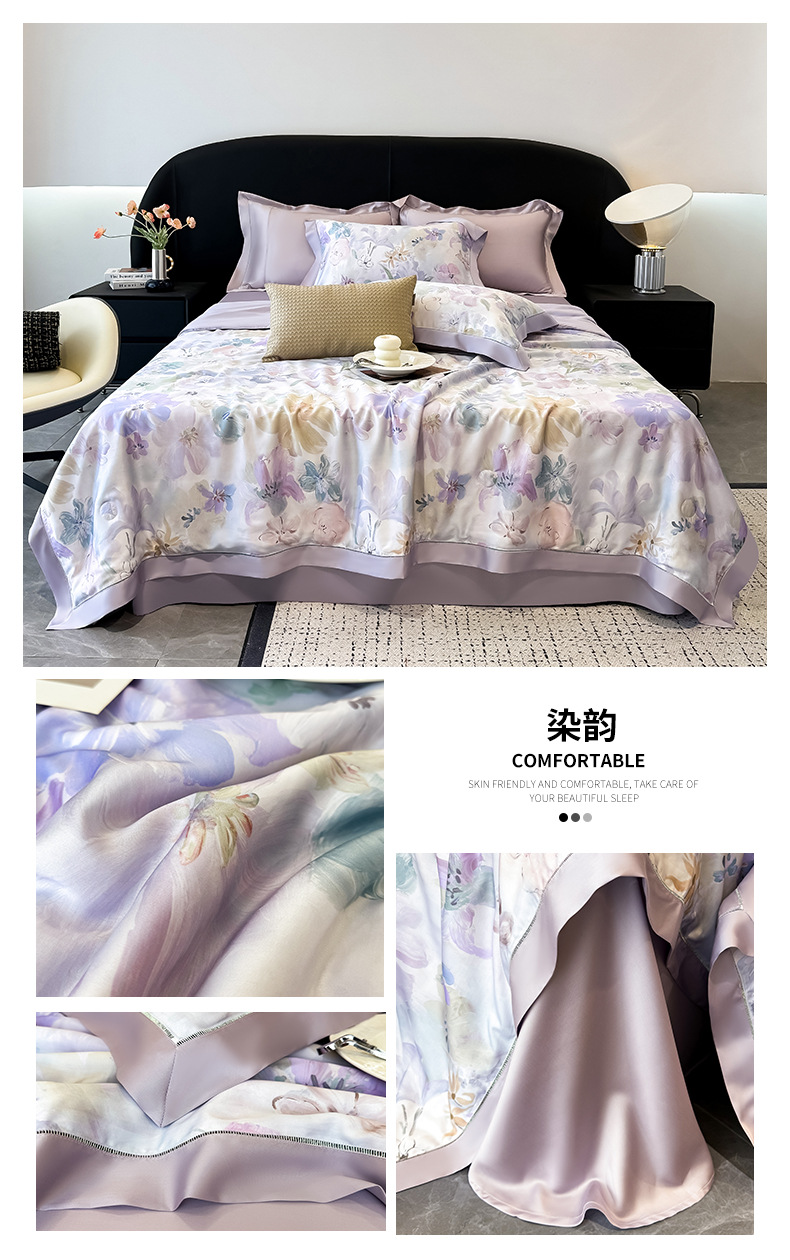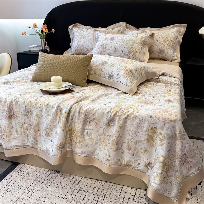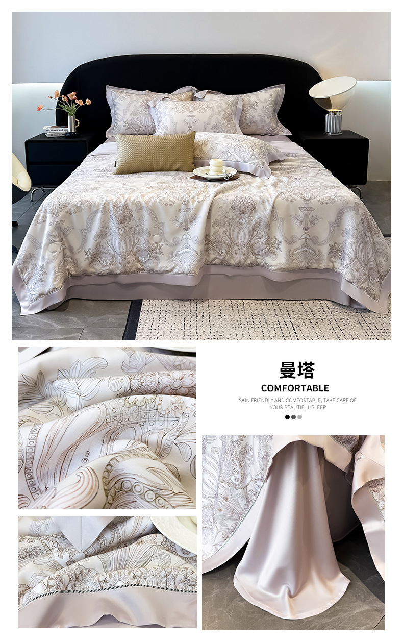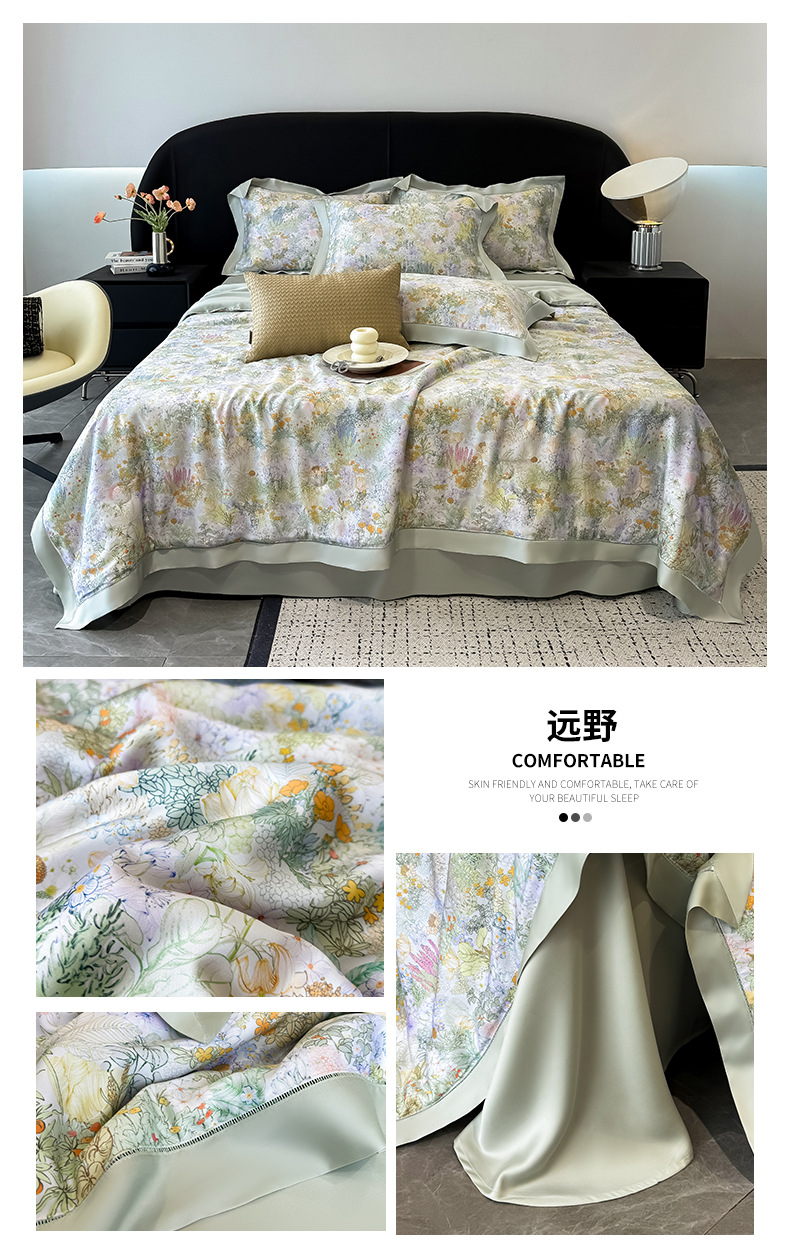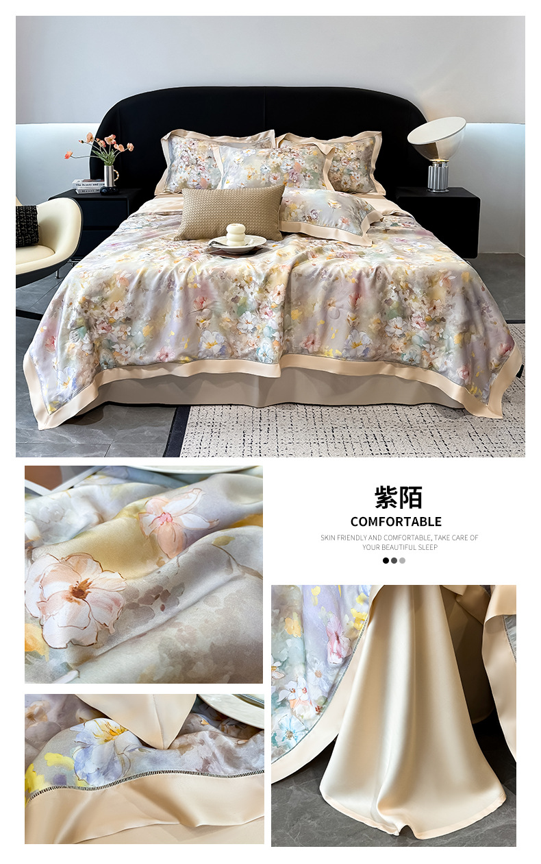 Lyocell 양면 Lanjing Tencel 여름 이불 에어컨 이불 여름 시원한 이불 4 조각 여름 잠자는 벌거 벗은 얼음 실크 얇은 이불