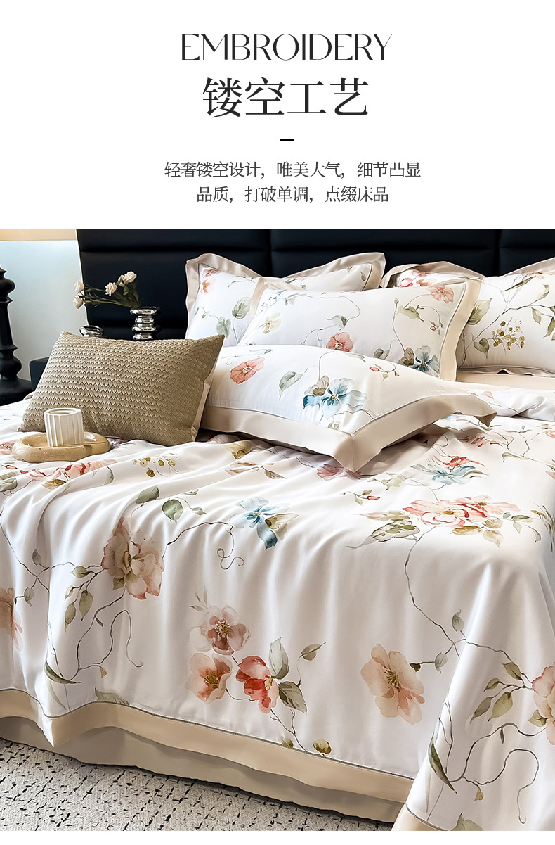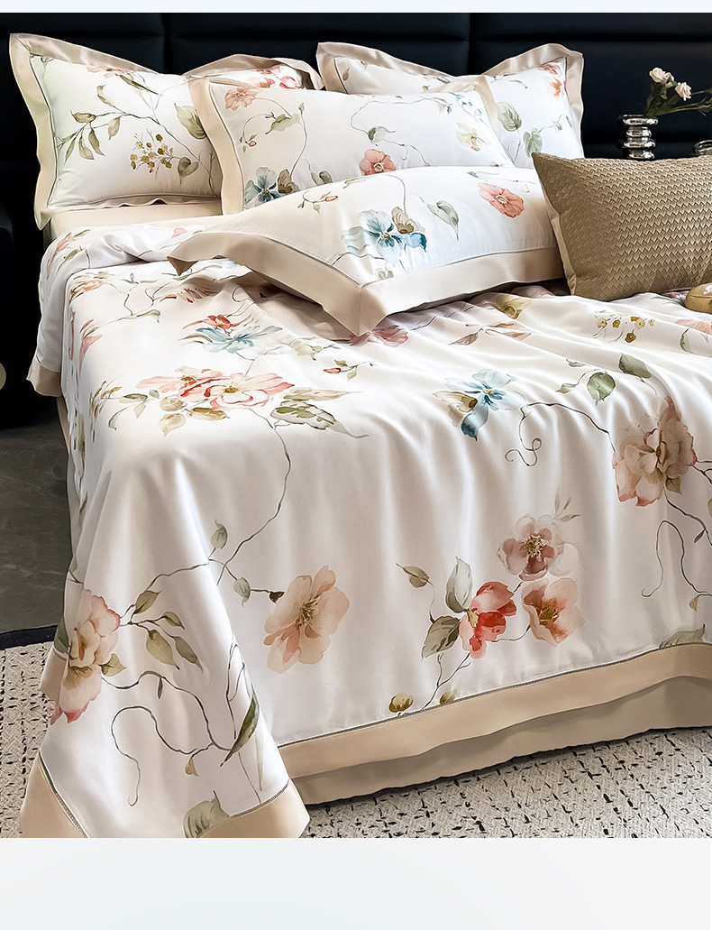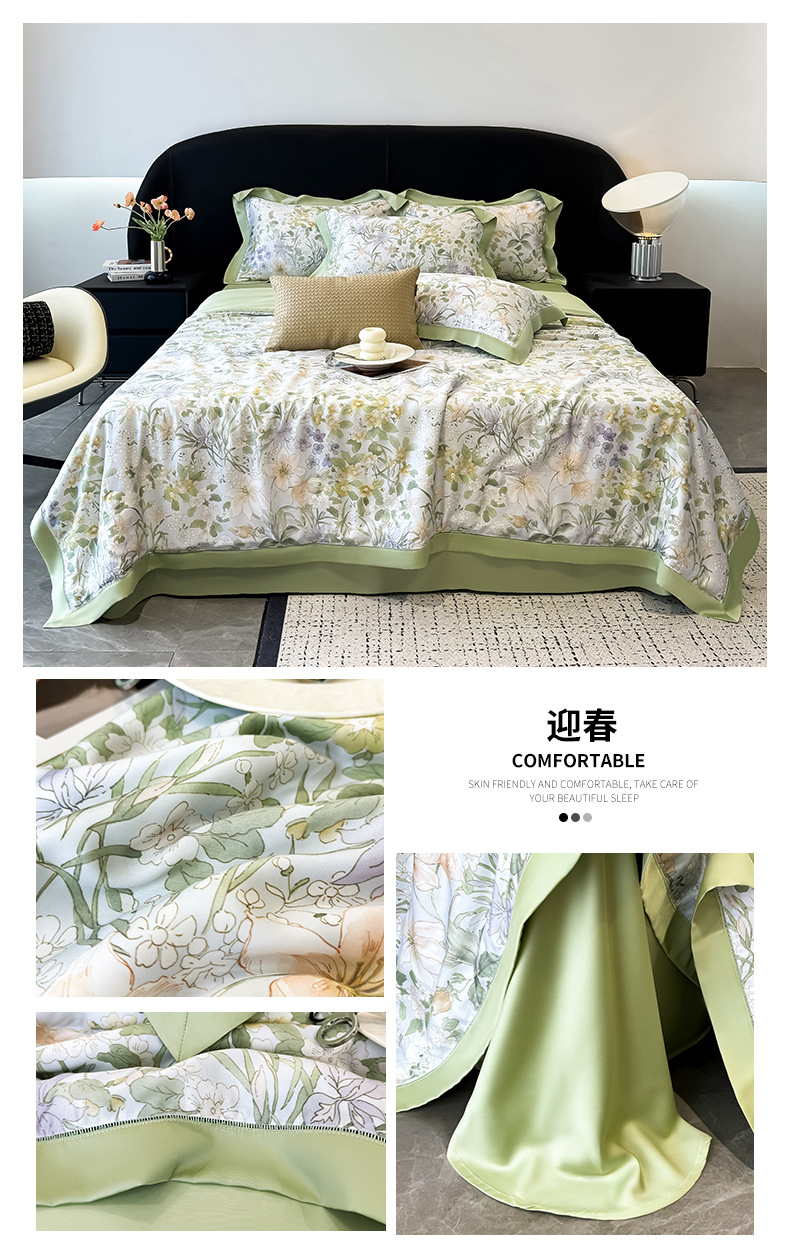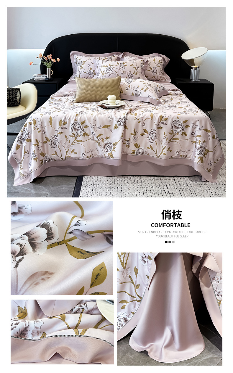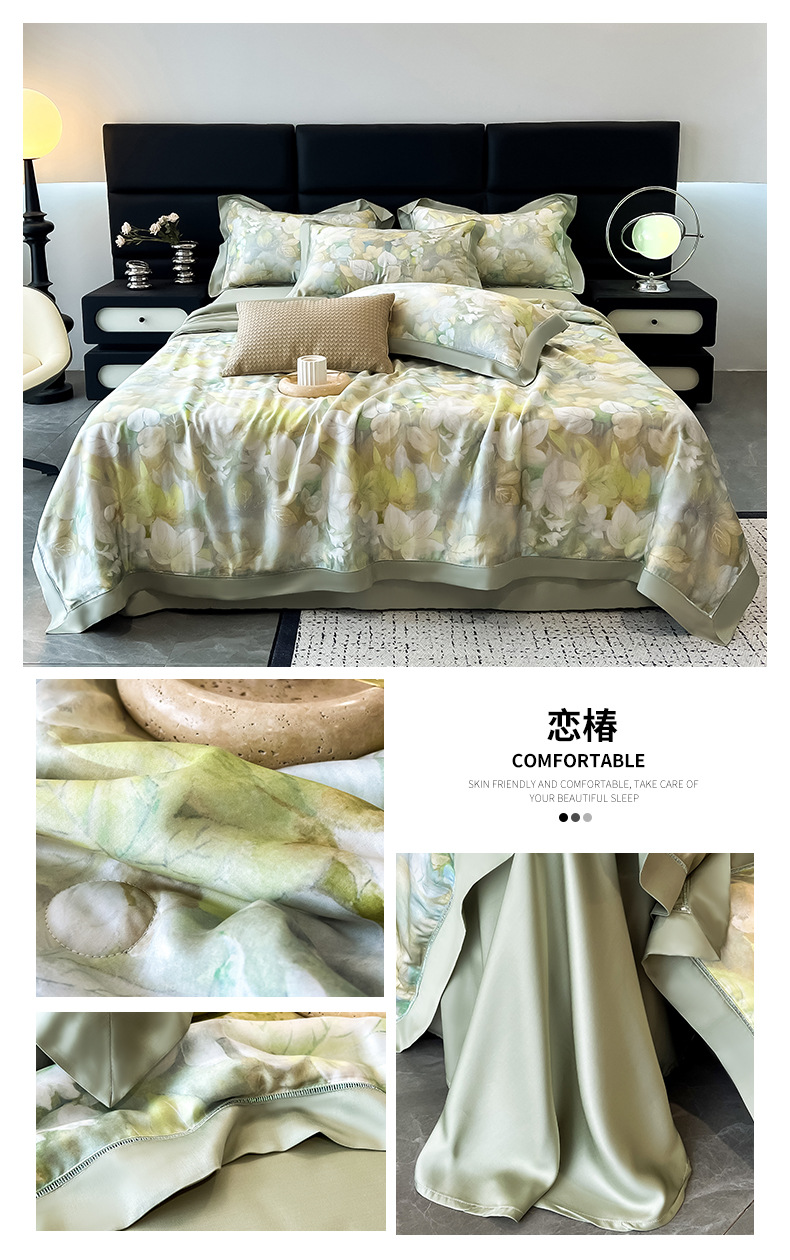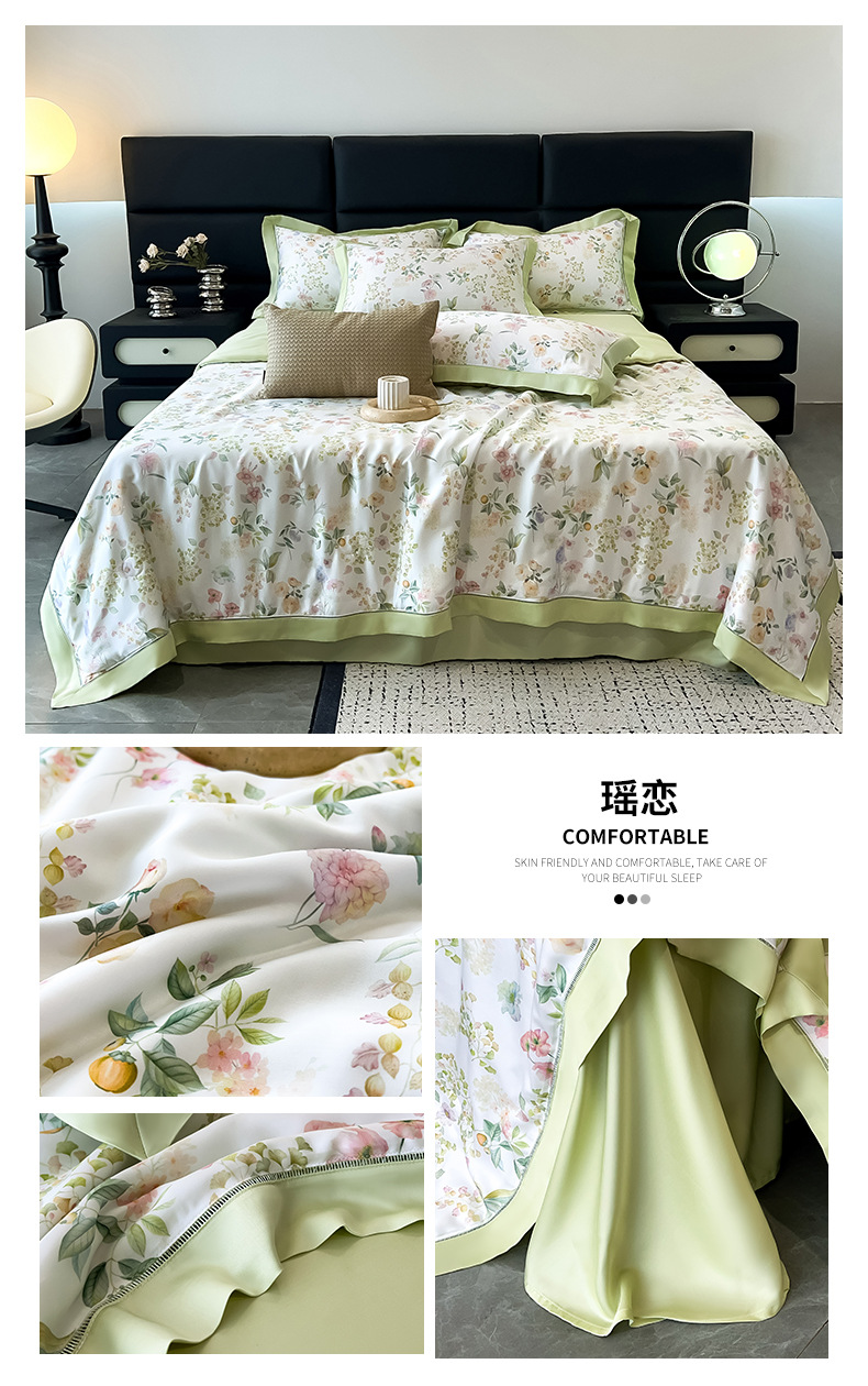 Lyocell 양면 Lanjing Tencel 여름 이불 에어컨 이불 여름 시원한 이불 4 조각 여름 잠자는 벌거 벗은 얼음 실크 얇은 이불