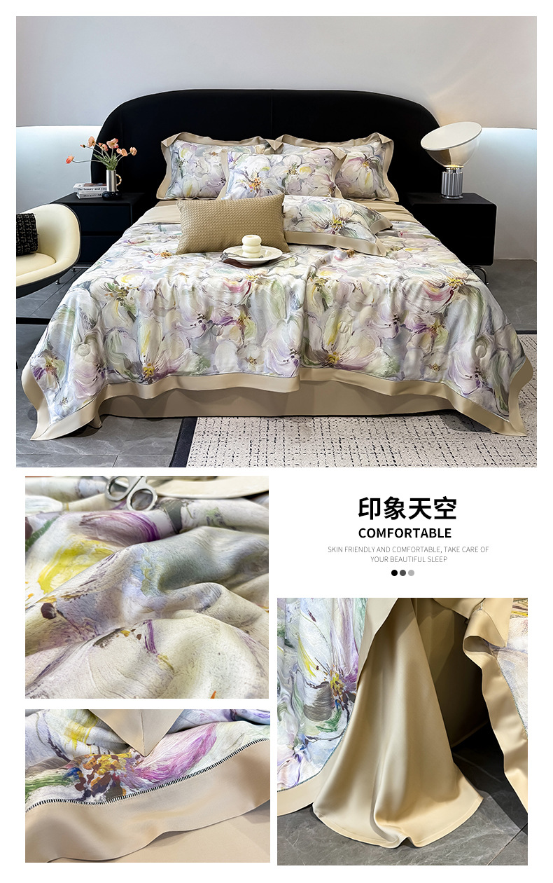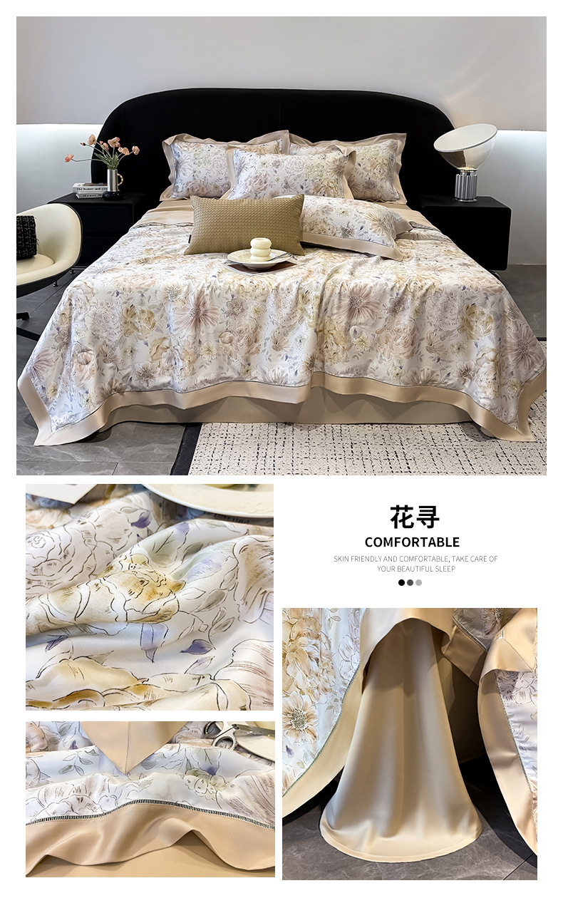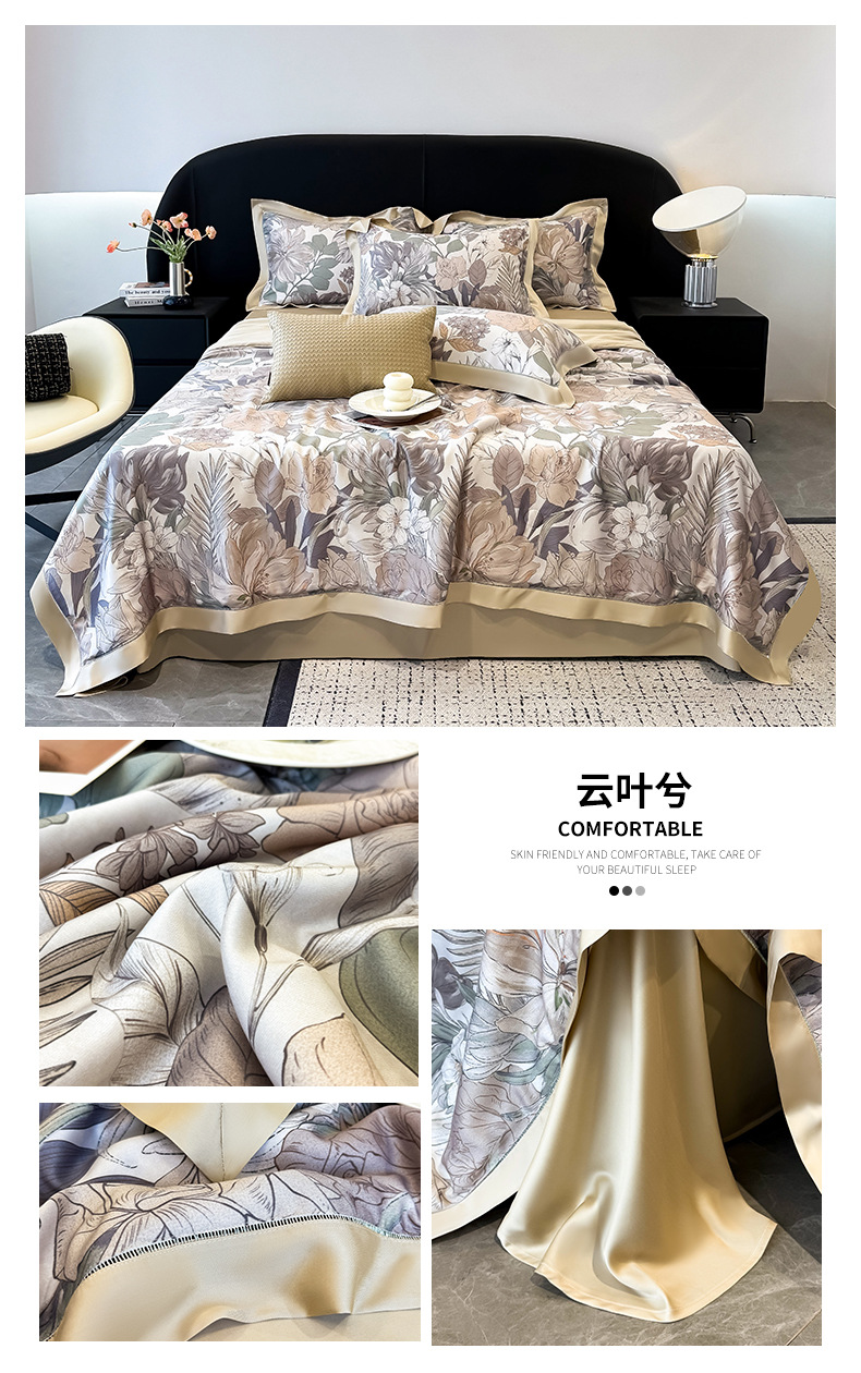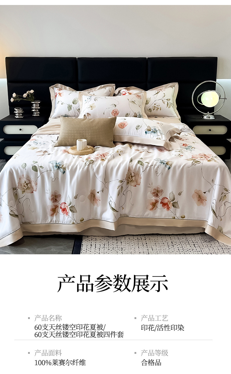 Lyocell 양면 Lanjing Tencel 여름 이불 에어컨 이불 여름 시원한 이불 4 조각 여름 잠자는 벌거 벗은 얼음 실크 얇은 이불스토어 가기