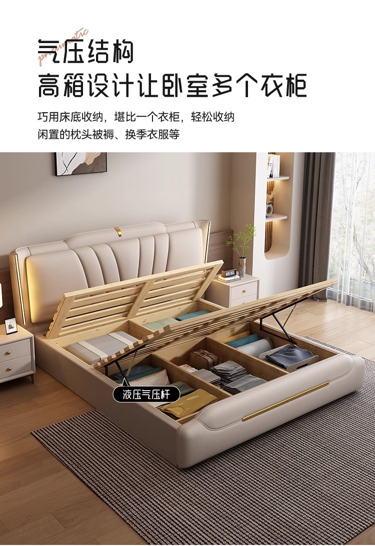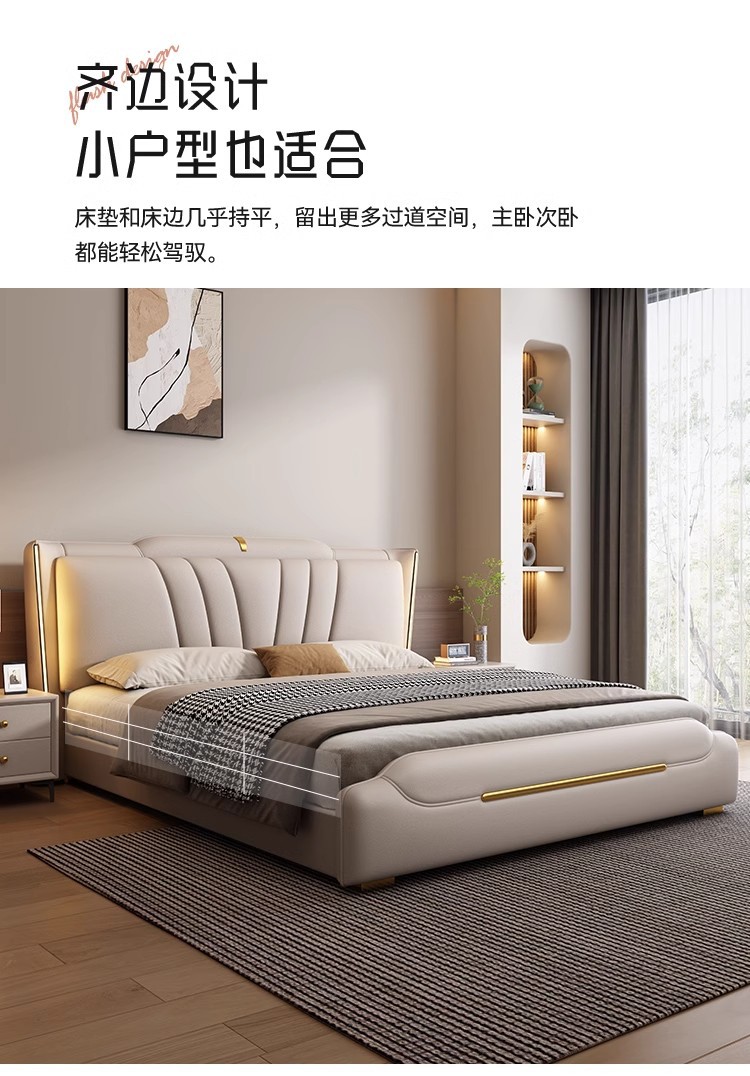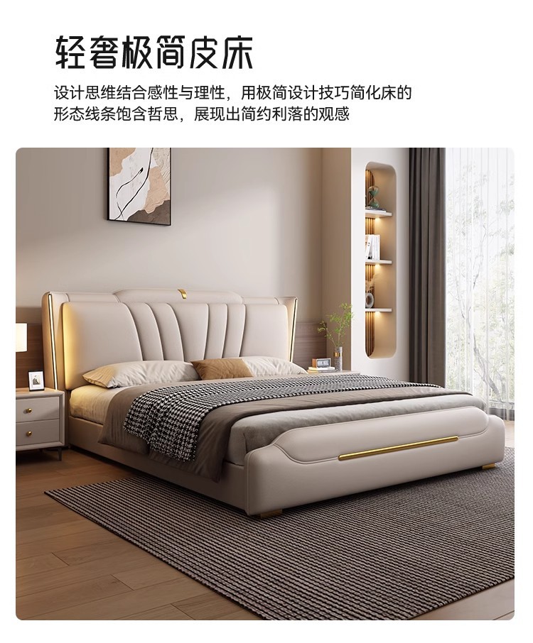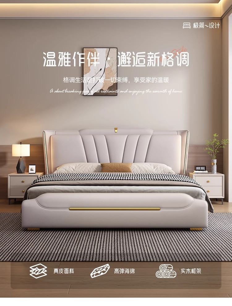 이탈리아 라이트 럭셔리 가죽 침대 하이 엔드 매우 간단한 마스터 침실 소프트 백 더블 1.8 m 1.5 m 스토리지 웨딩 침대스토어 가기