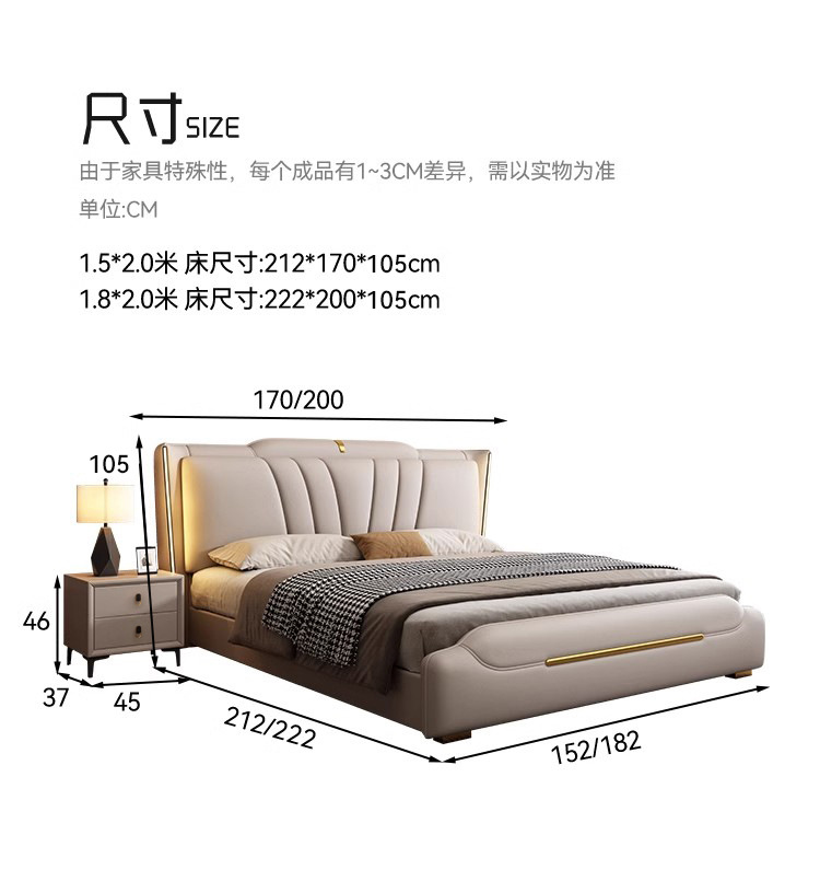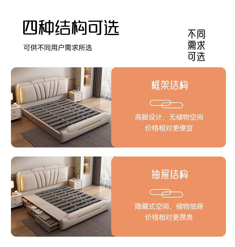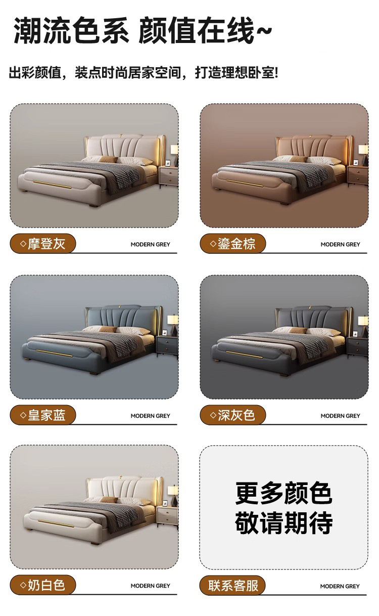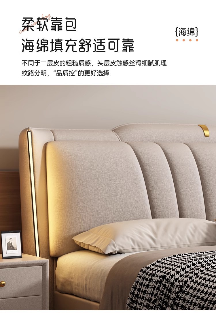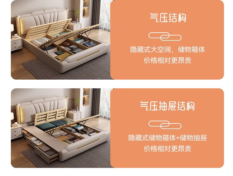 이탈리아 라이트 럭셔리 가죽 침대 하이 엔드 매우 간단한 마스터 침실 소프트 백 더블 1.8 m 1.5 m 스토리지 웨딩 침대스토어 가기