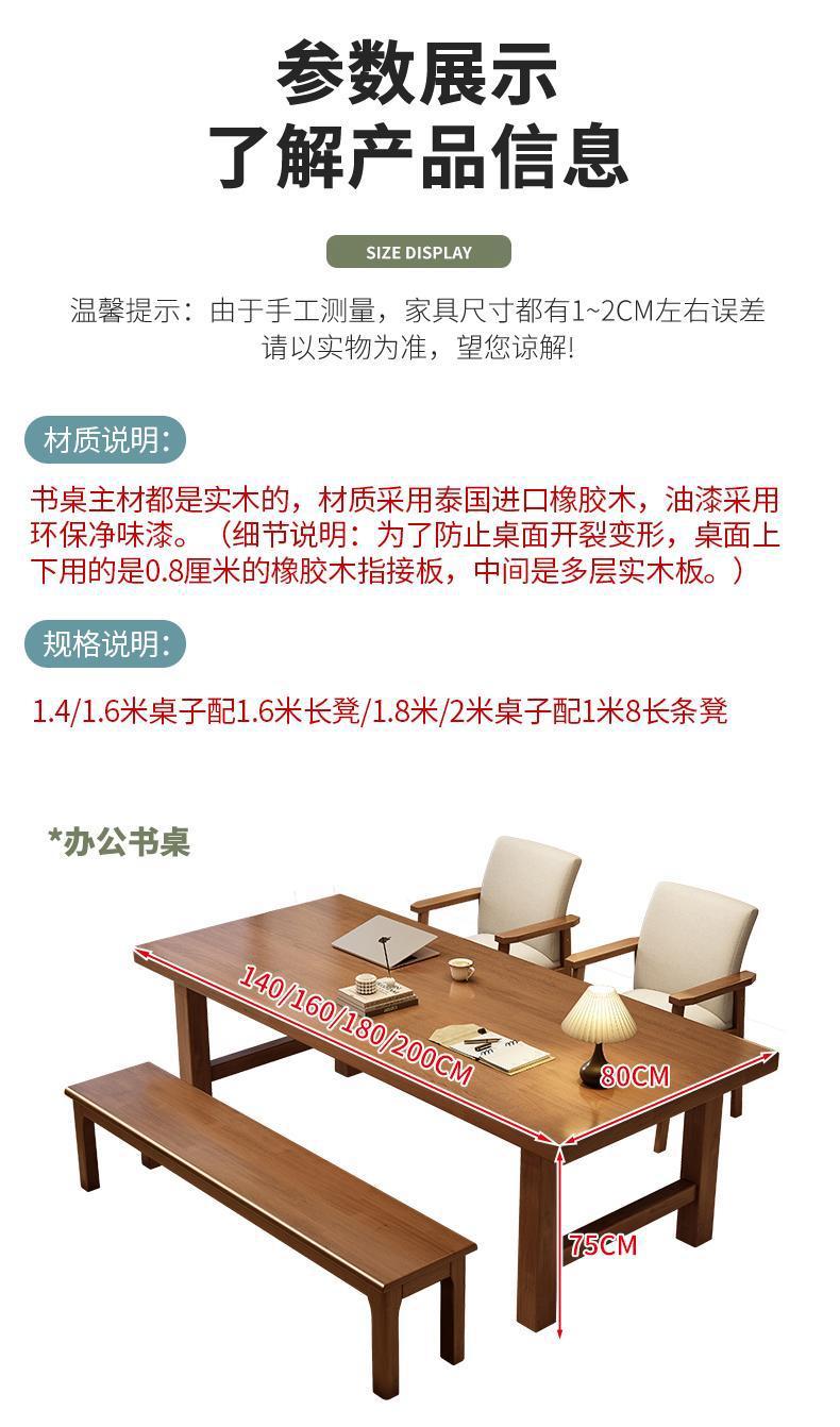 단단한 나무 큰 보드 테이블 홈 거실 긴 책상 간단한 책상 작업대 다 사람 읽기 및 학습 테이블스토어 가기