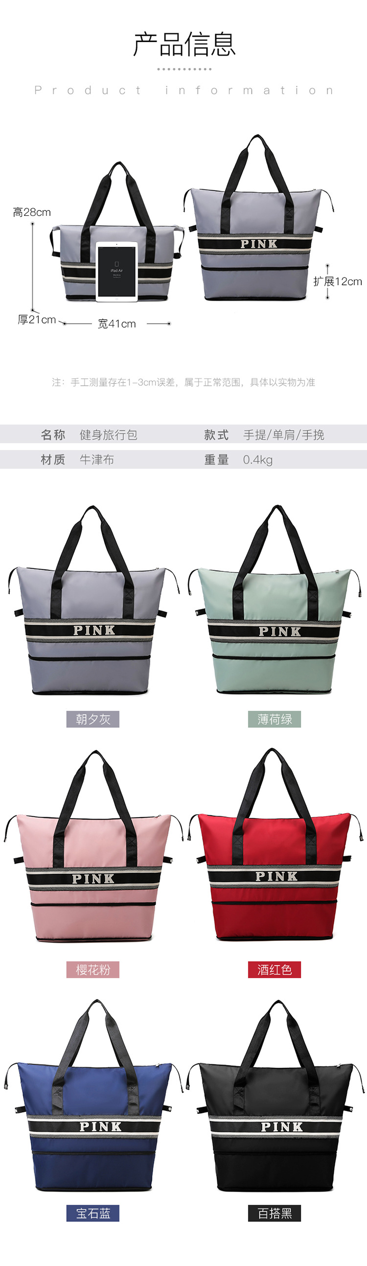 새로운 대용량 개폐식 여행 가방 짧은 거리 야외 피트니스 가방 경량 보관 여행 수하물 가방스토어 가기
