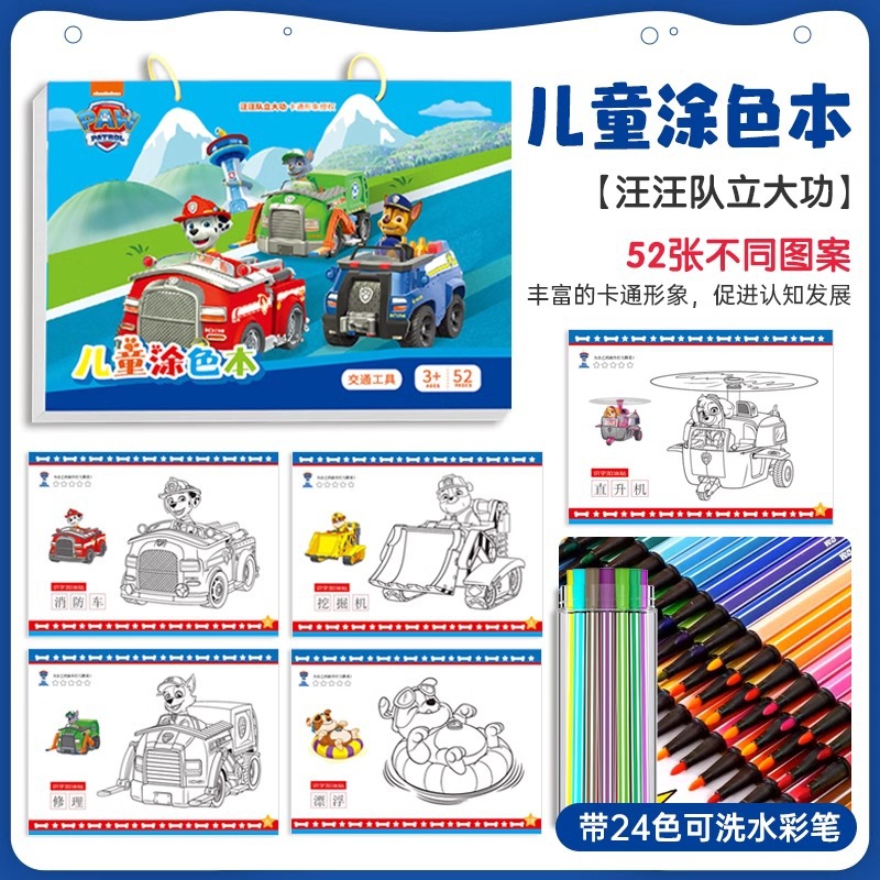 • Paw Paw Team + 24색 세척 가능한 수채화 펜❤[A4 사이즈/두껍고 부드러운 종이]