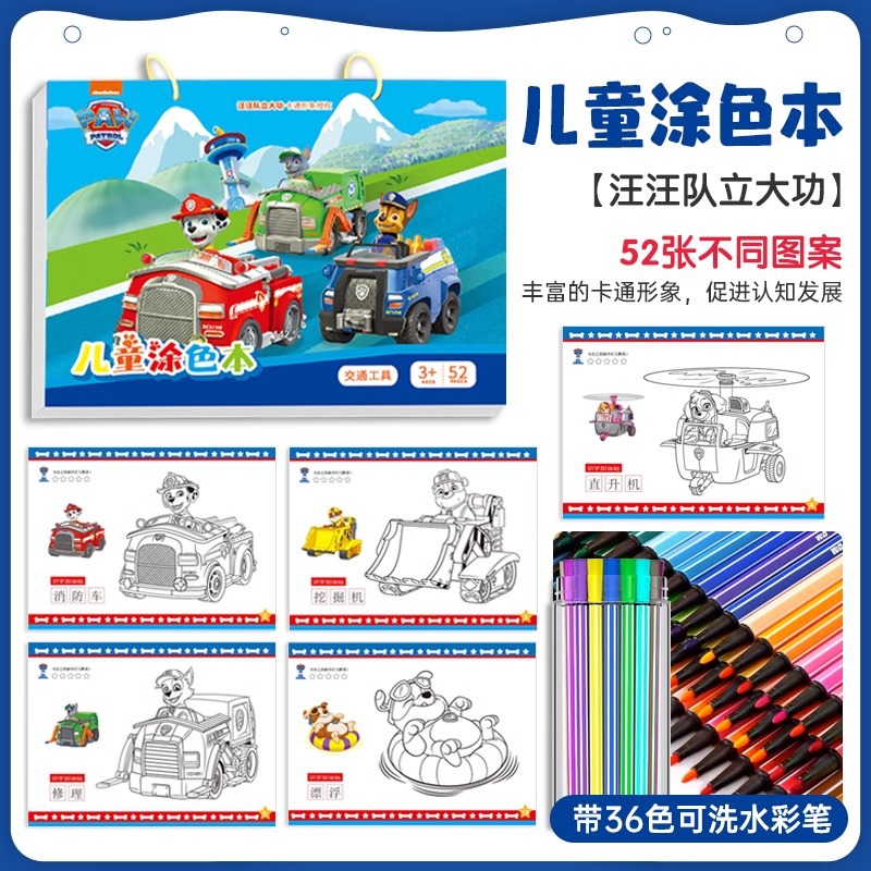 • Paw Paw Team + 36색 세척 가능한 수채화 펜❤[A4 사이즈/두껍고 부드러운 종이]