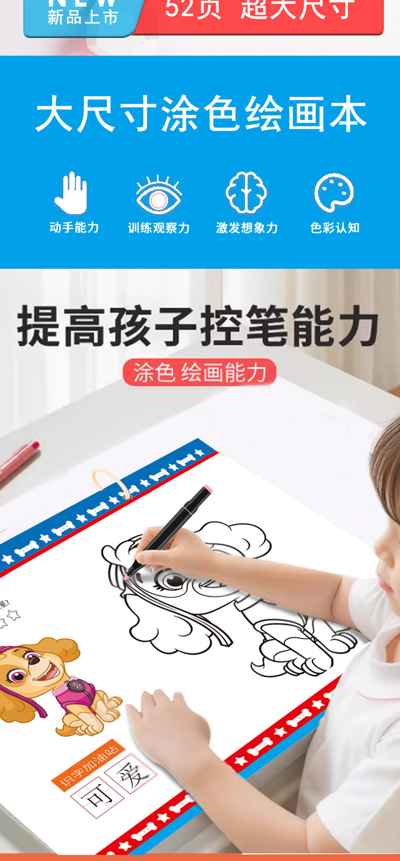 왕왕 팀 페인팅 북 어린이 마커 페인팅 컬러 필링 컬러북 아치 페인팅 앨범 3-6 세 유치원
