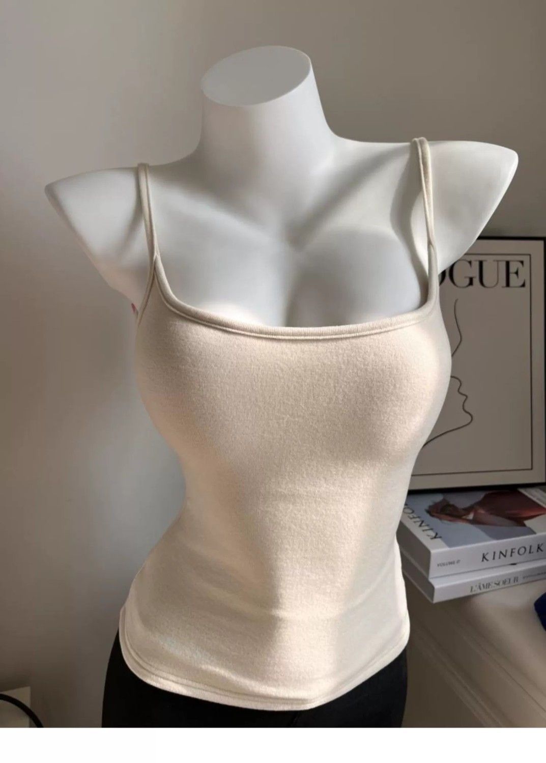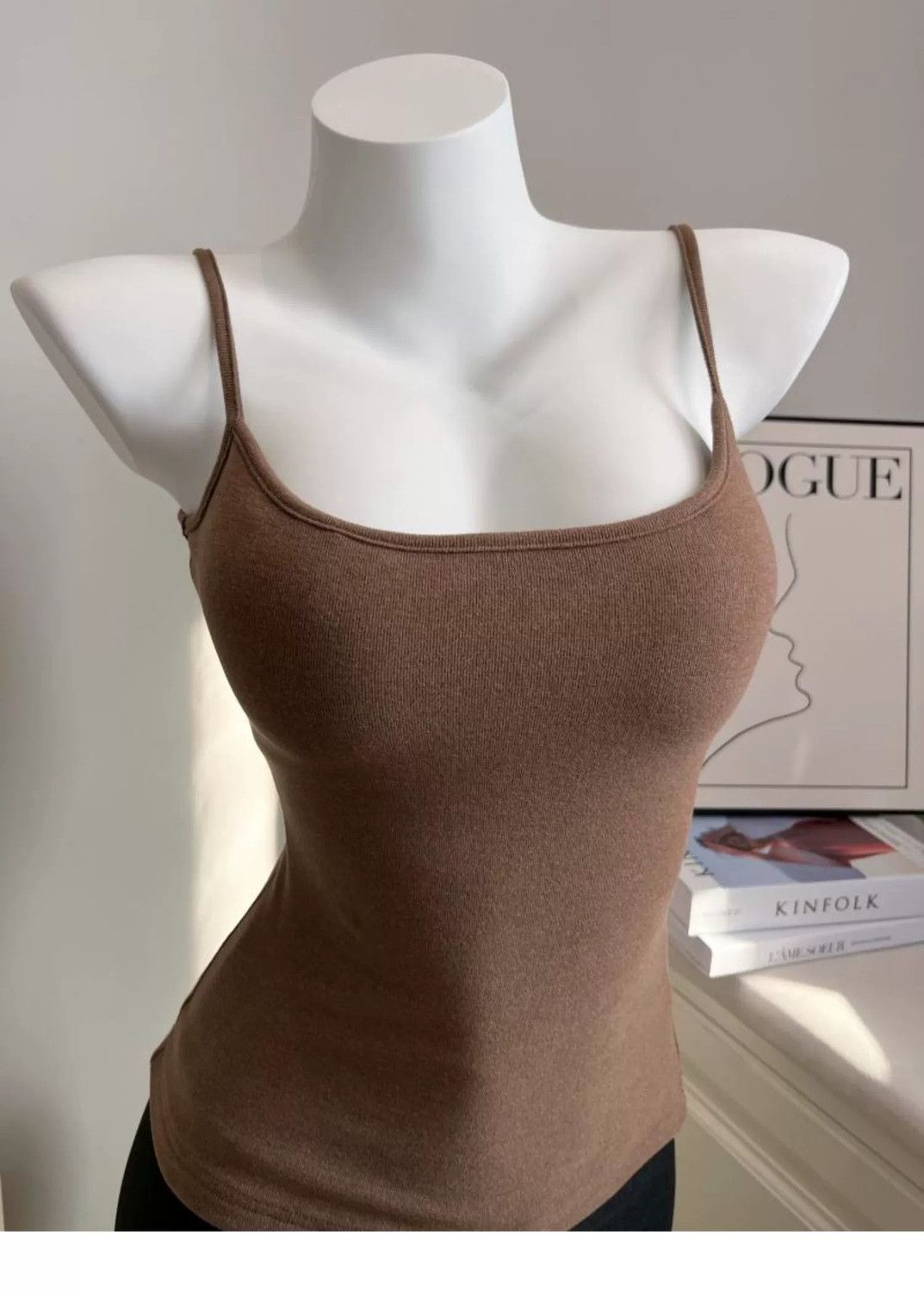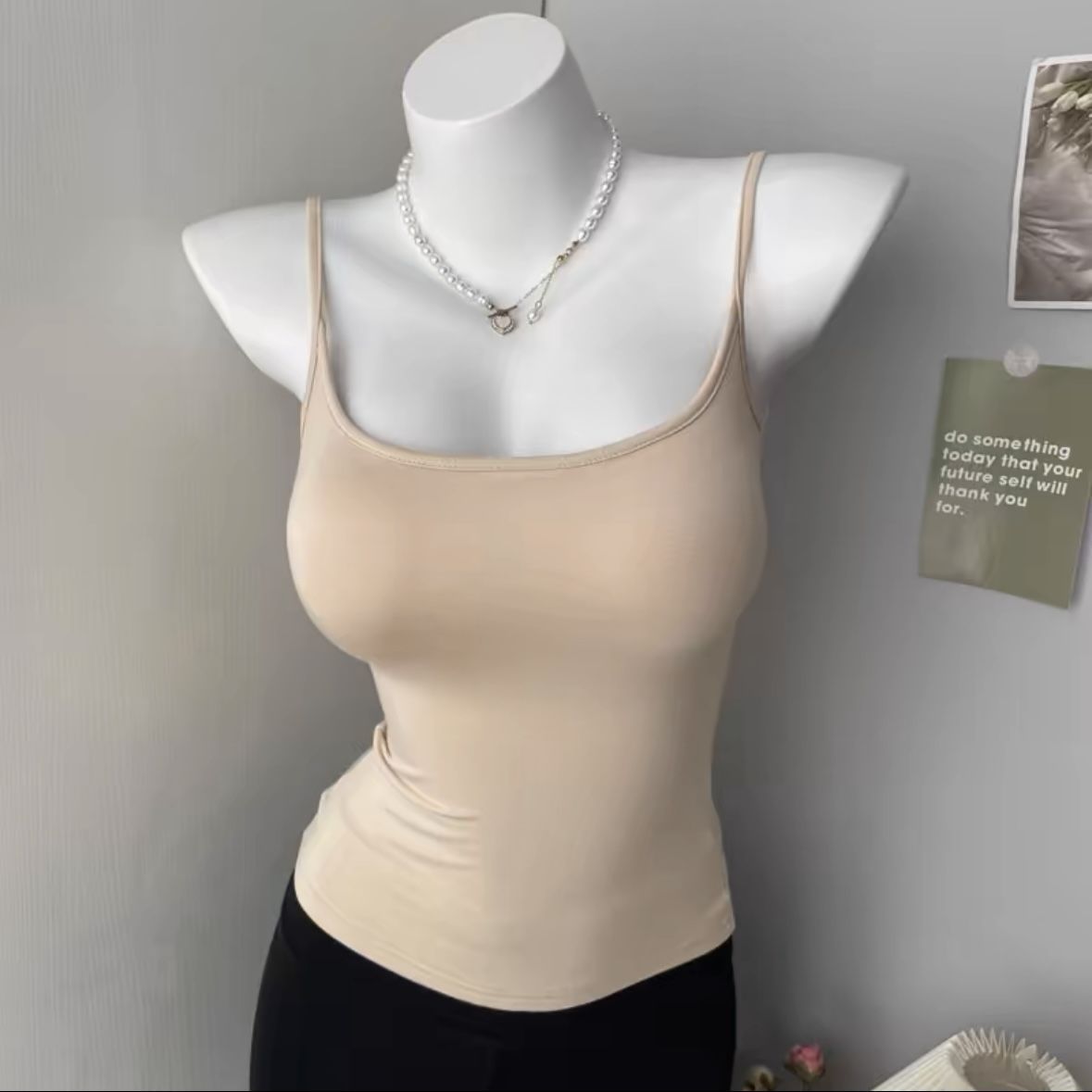 봄 새로운 샌딩 작은 카미 솔 조끼 여성용 가슴 패드 섹시한 슬림 핏 내부 두꺼운 디자인 탑