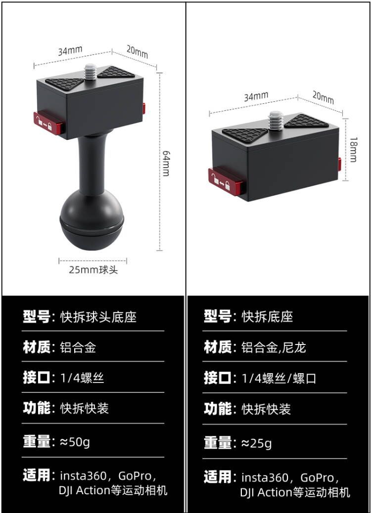 Gopro Dajiang insta360x3/x2 파노라마 스포츠 카메라 퀵 릴리스 베이스 볼 헤드 링크 액세서리에 적용스토어 가기