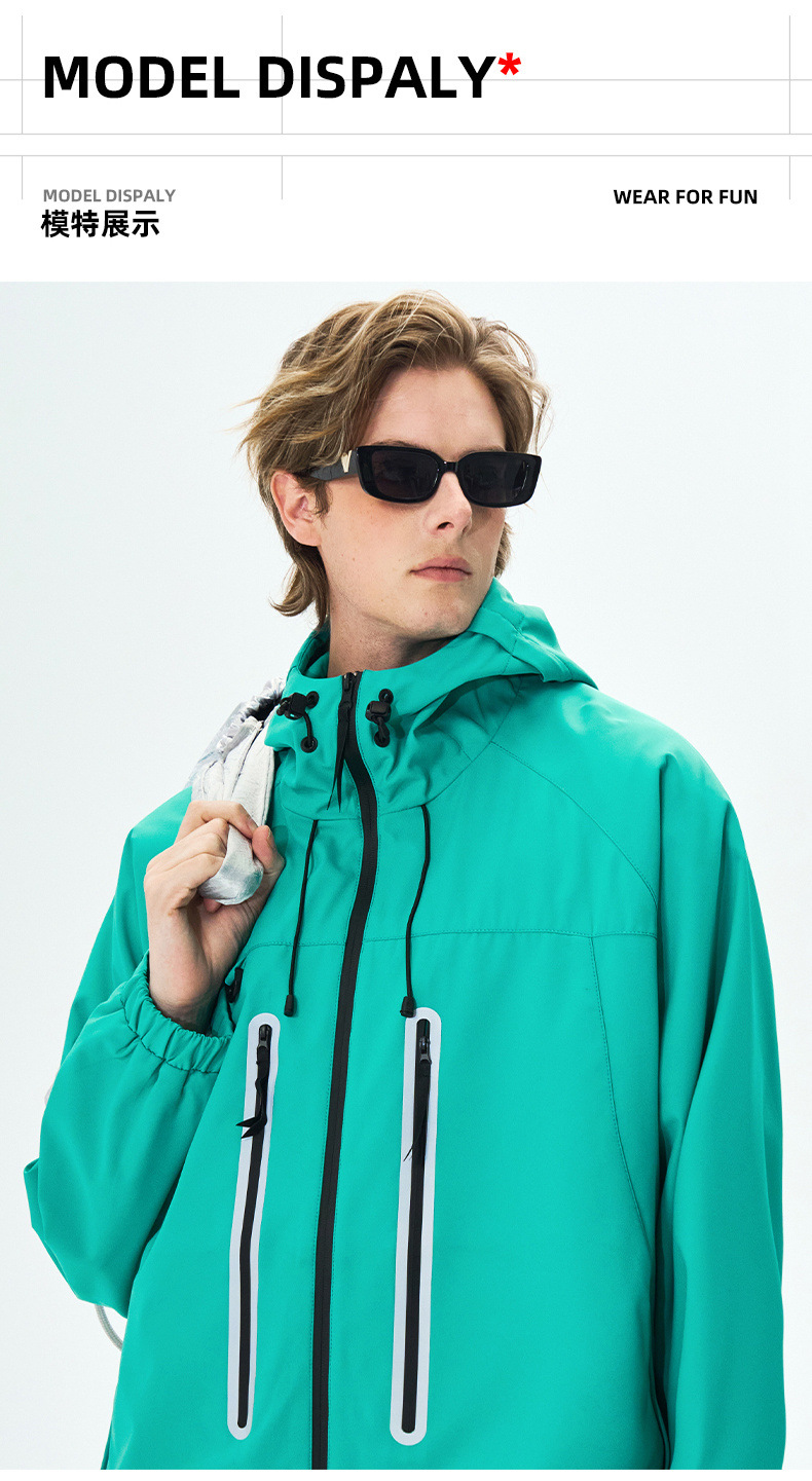 IZEXX 타이드 브랜드 마운틴 야외 반사 후드 재킷 남자 하이킹 캠핑 자켓 등산 세트 커플