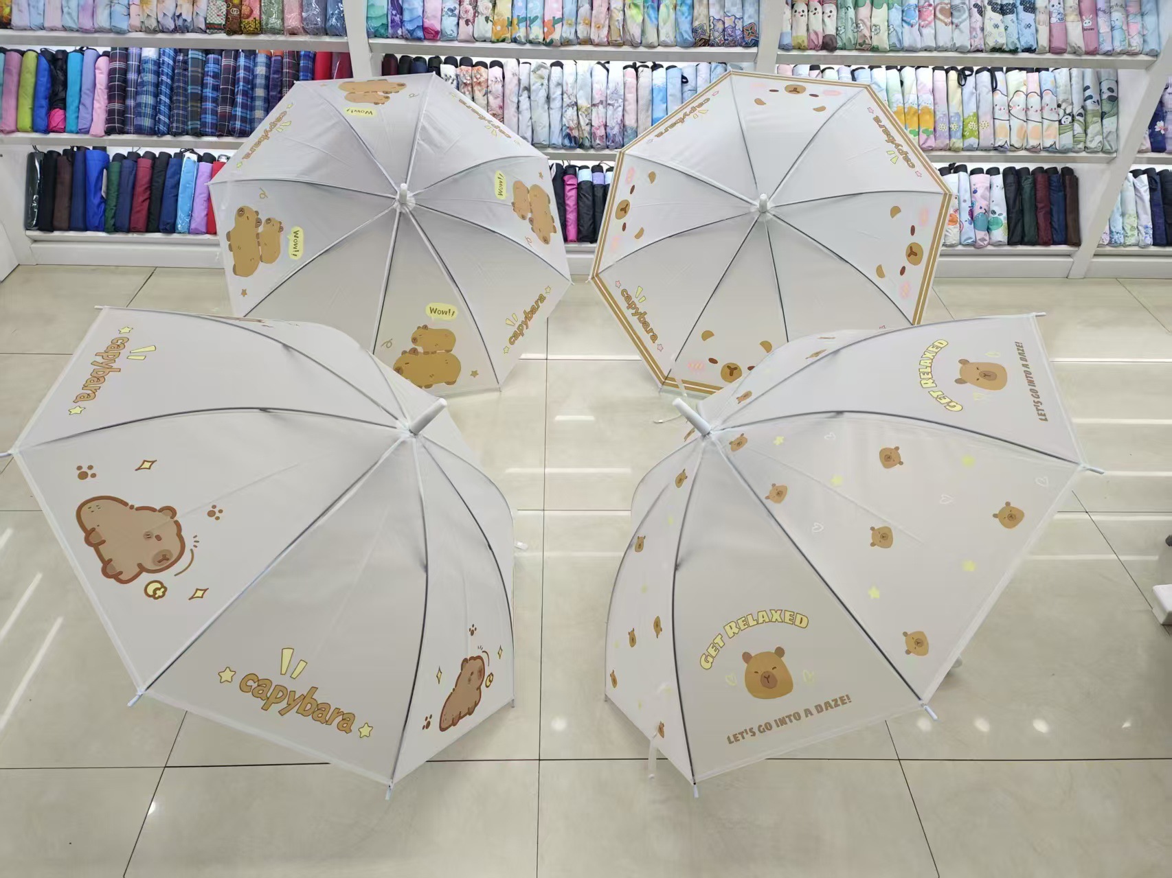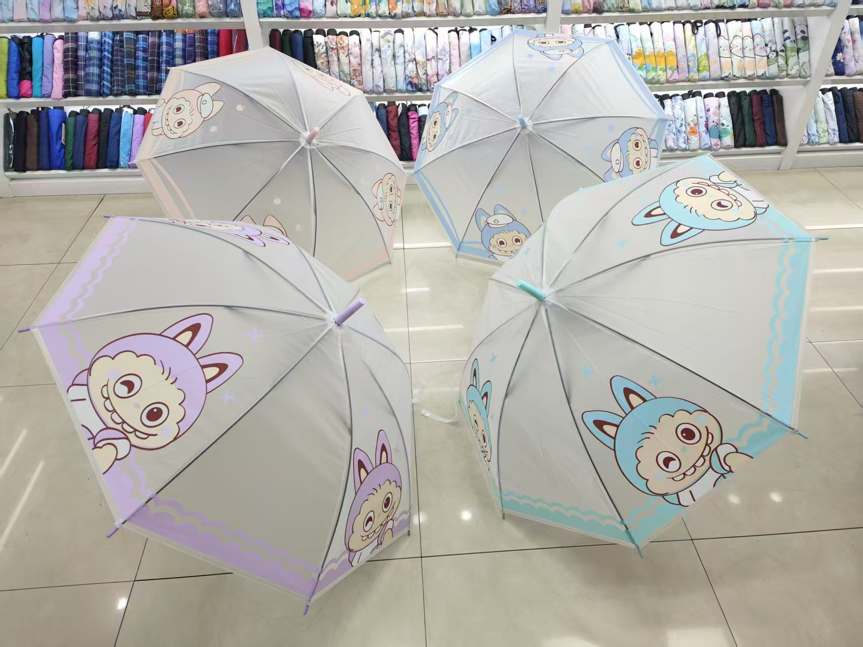 투명 우산 만화 어린이 우산 작은 신선한 스트레이트 로드 긴 손잡이 우산 광고 우산 내 학생 귀여운 우산 사진