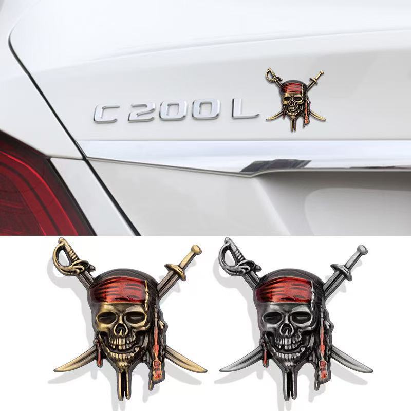 자동차 3D 맞춤형 해적 장식 스티커 금속 캐리비안의 해적 자동차 스티커 해골 입체 자동차 로고 도어