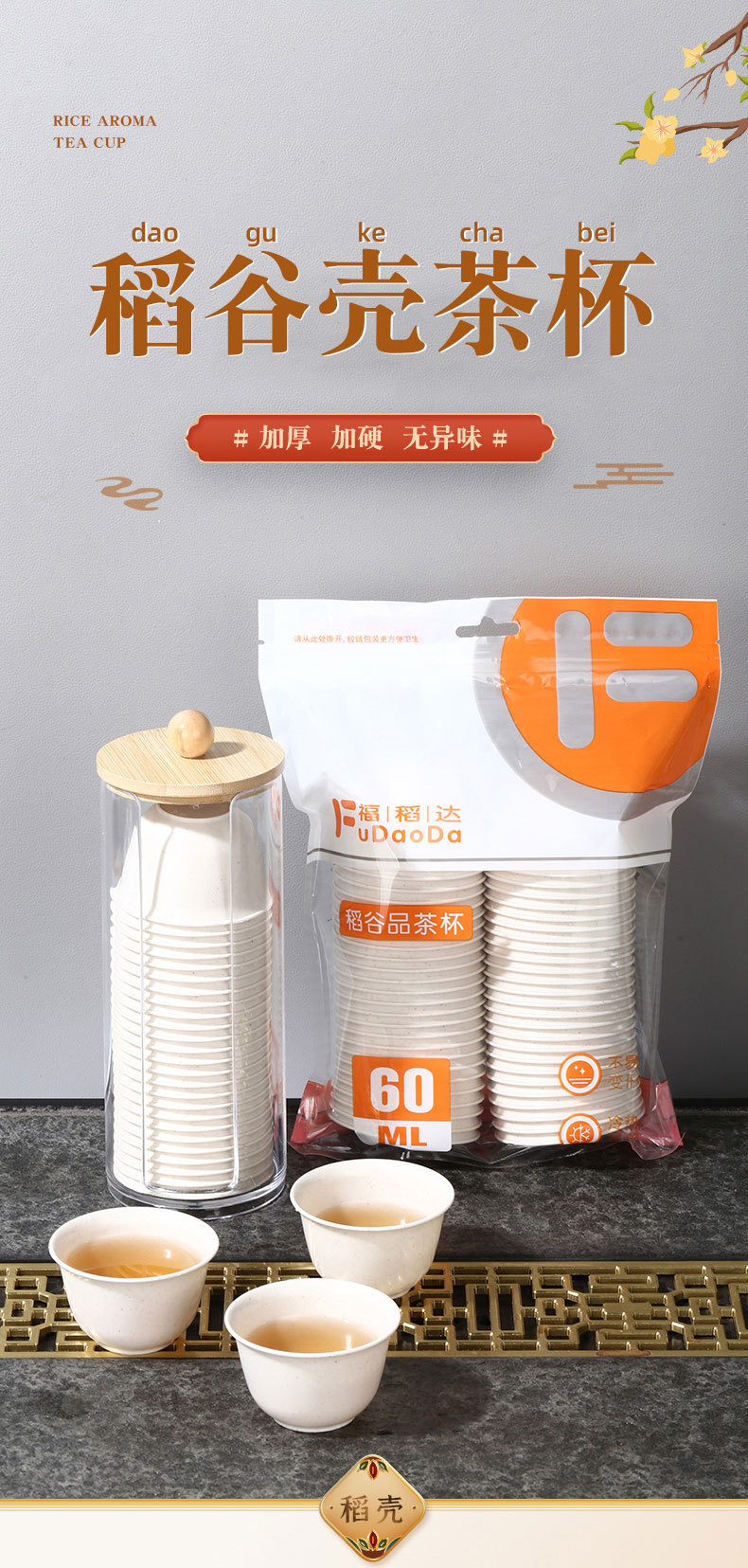 고급 일회용 티 컵 쌀 껍질 차 차 차 시음 쿵푸 작은 티 컵 미니 스몰 사이즈 쌀 향기로운 컵 차 세트스토어 가기