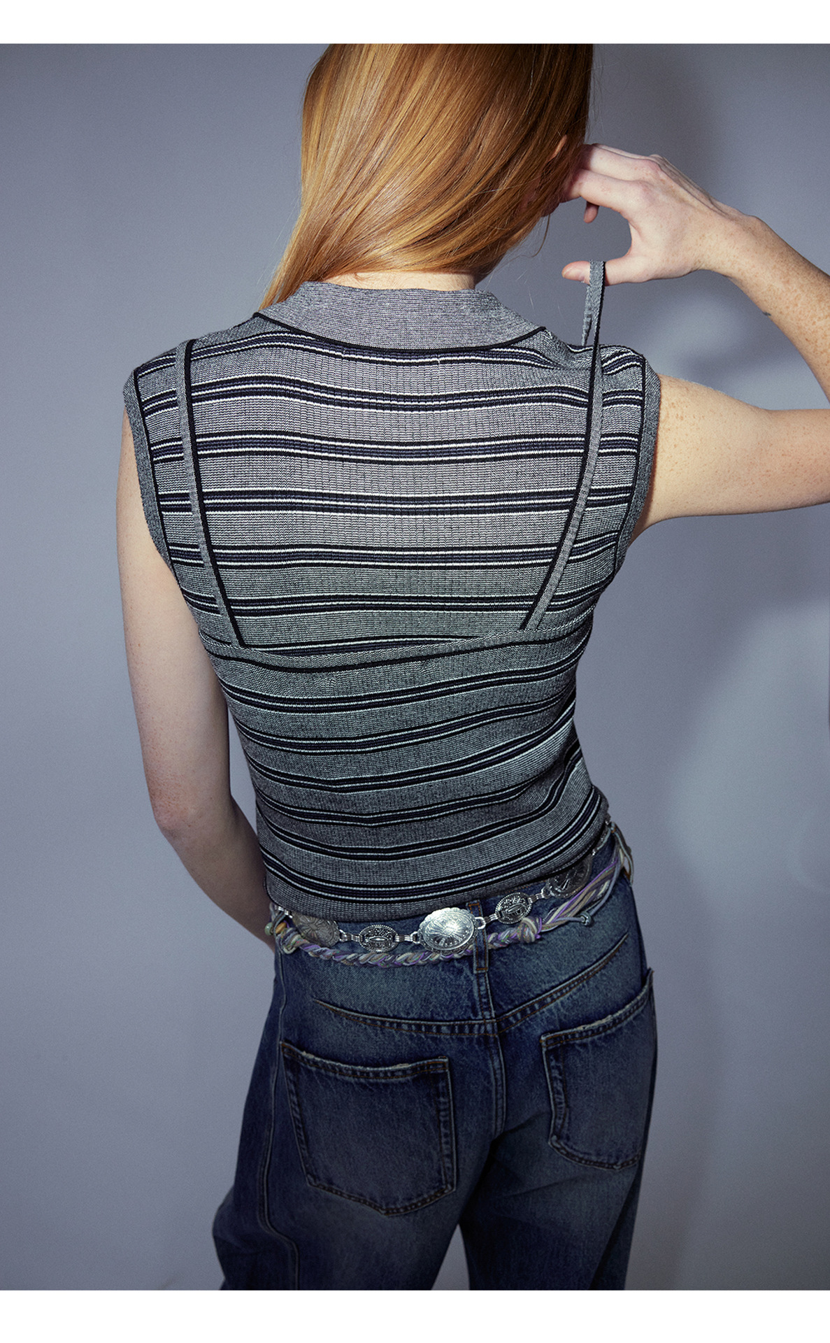 [시간] 여성 V8175 를 위한 새로운 줄무늬 양모 양모 니트 카미솔베이스 마이크로 탄성 재킷스토어 가기
