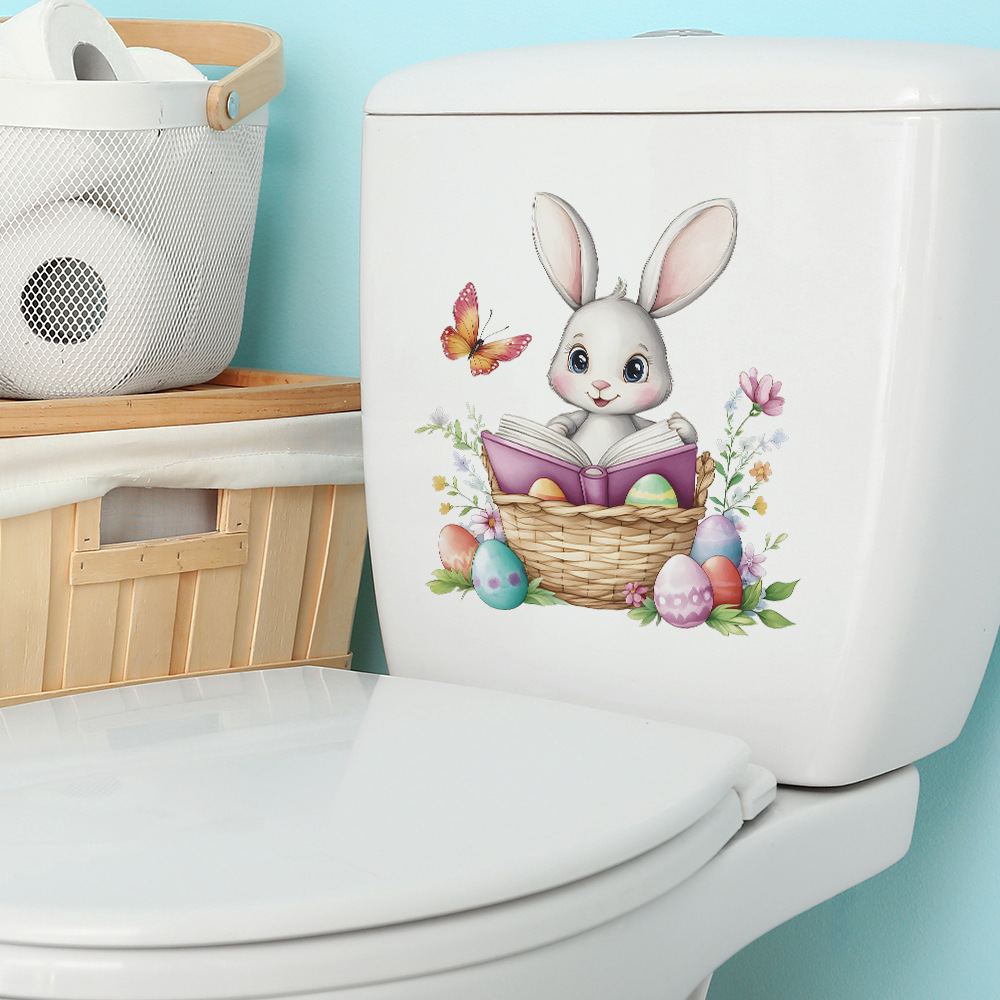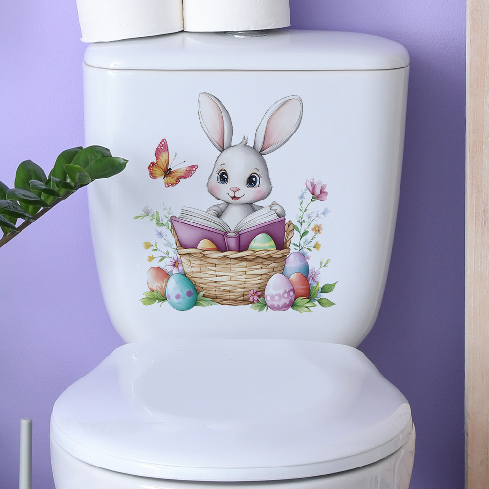 Fun-m345 그린 토끼 독서 화장실 스티커 욕실 화장실 장식 벽 스티커 도매