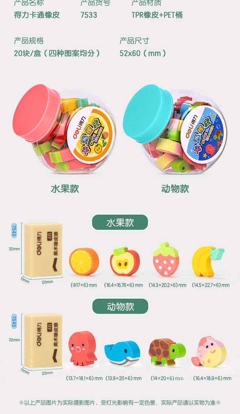 델리 7533 어린이 귀여운 만화 미니 지우개 작은 고무 작은 학생 문구 배럴스토어 가기