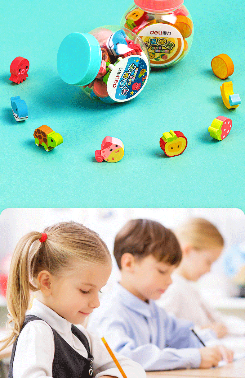 델리 7533 어린이 귀여운 만화 미니 지우개 작은 고무 작은 학생 문구 배럴