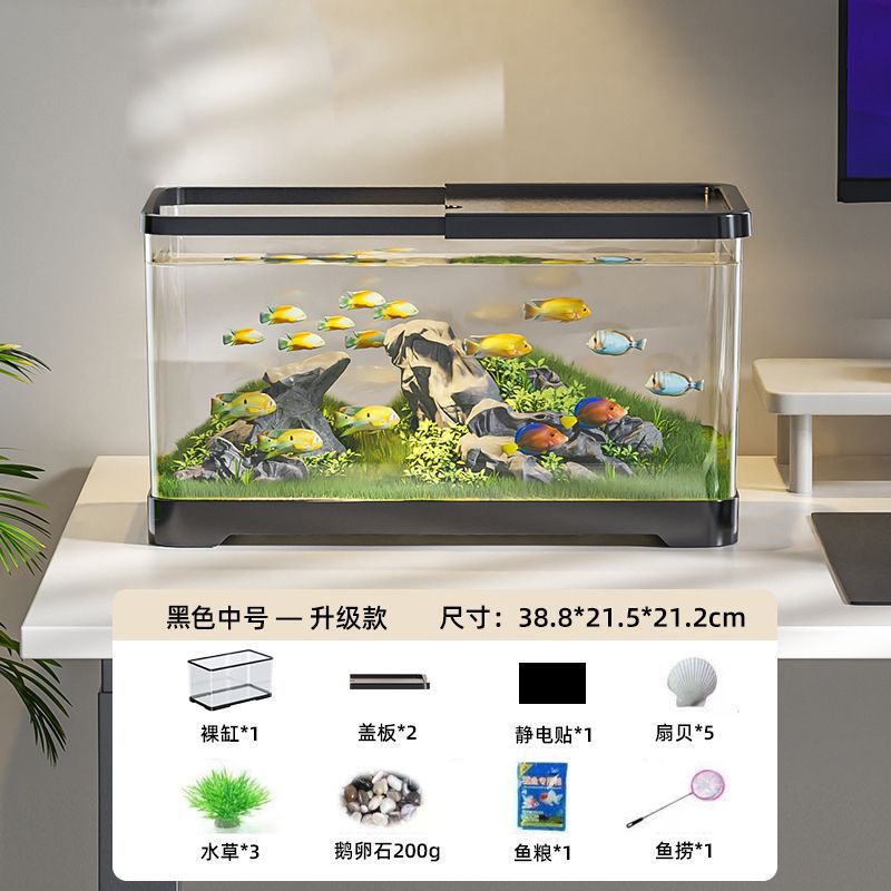 물고기 탱크 수족관 데스크탑 생태 금붕어 탱크 플라스틱 투명한 거실 풍경 중소 규모 게으른 물 변화 가정용 탱크스토어 가기
