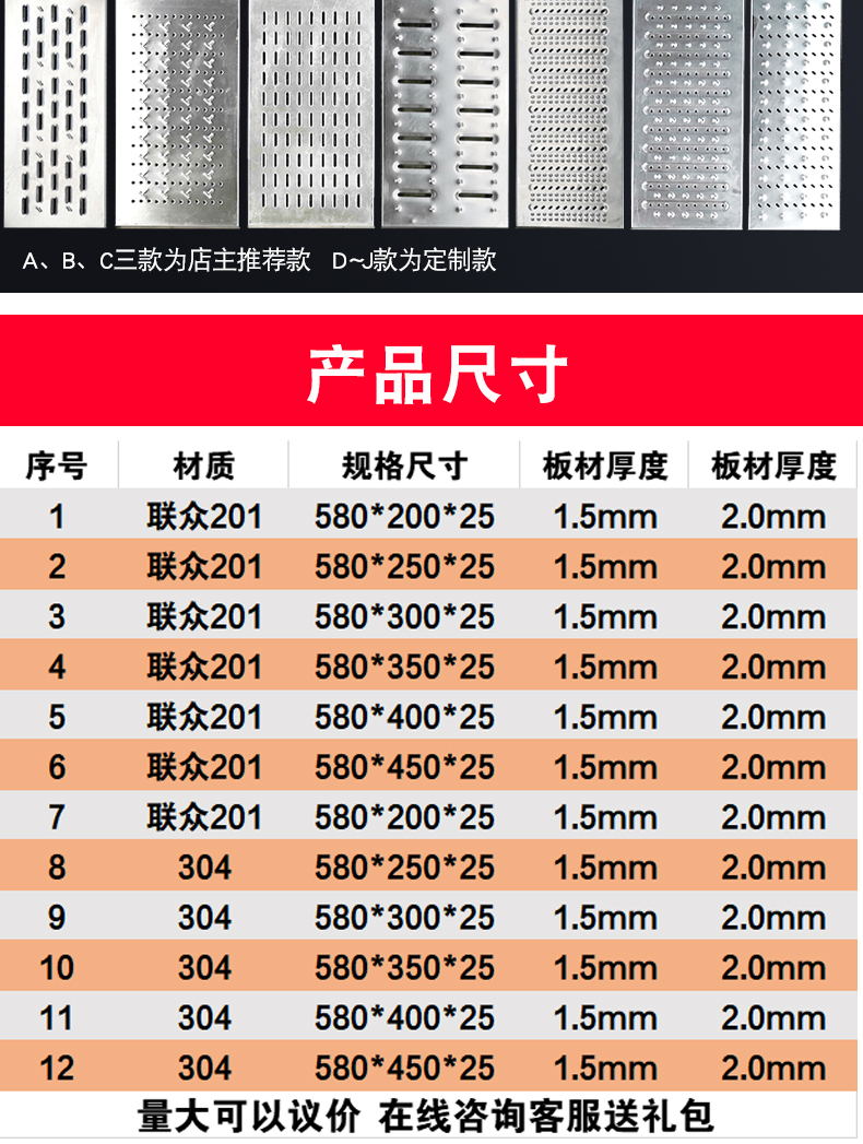 • 201/1.5 보드 580*100*25 평판 펀칭