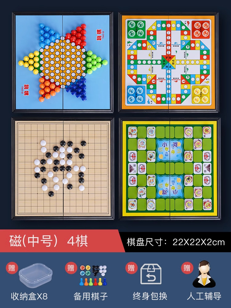 • 강화된 자석 [중형] 주사위 놀이 + 플라잉 체스 + 체커 + 짐승 싸움 체스