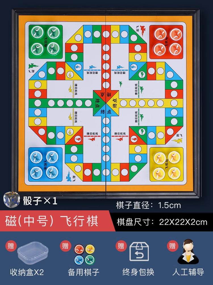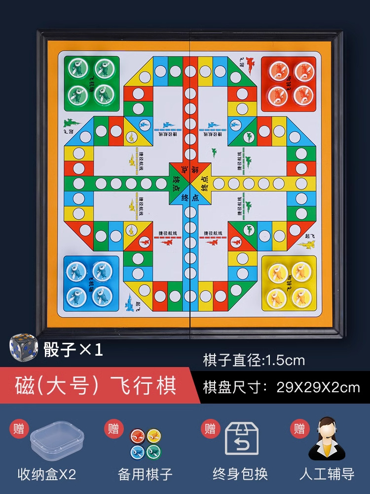 • 강화된 자석 [중형] 플라잉 체스(무료 예비 부품 + 주사위 + 보관함*2)