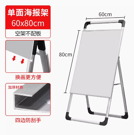 • 60*80 알루미늄 합금 단면 포스터 스탠드 [내구성 및 녹슬지 않음] (선반만)