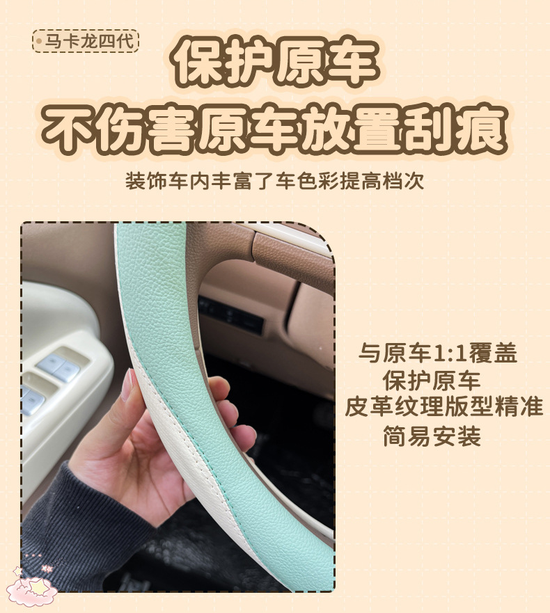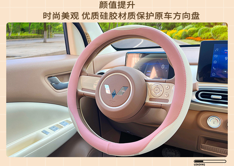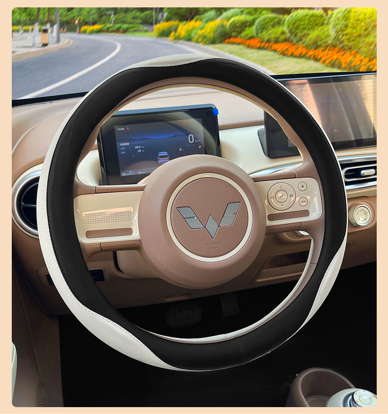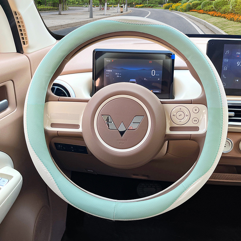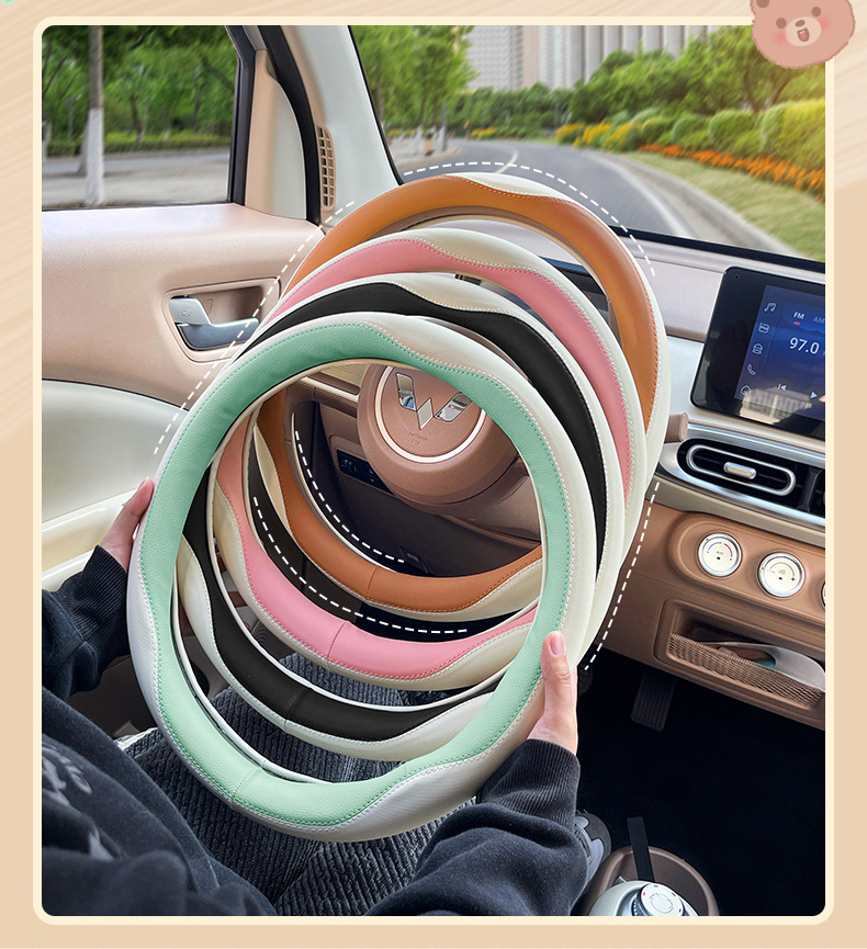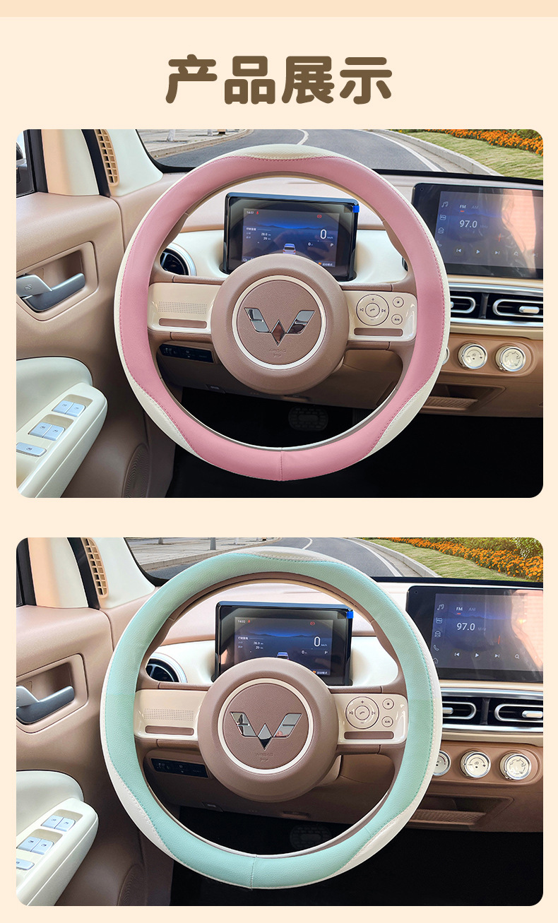 Wuling Macaron 4 세대 자동차 스티어링 휠 커버 4 시즌 범용 자동차 핸들 커버 수정 가죽 보호 커버에 적합스토어 가기