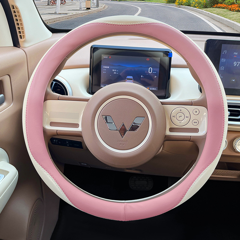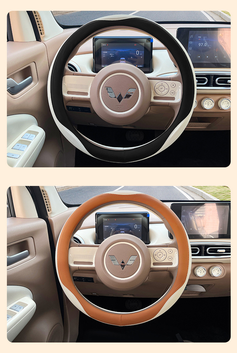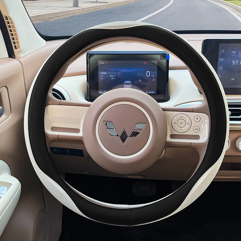 Wuling Macaron 4 세대 자동차 스티어링 휠 커버 4 시즌 범용 자동차 핸들 커버 수정 가죽 보호 커버에 적합