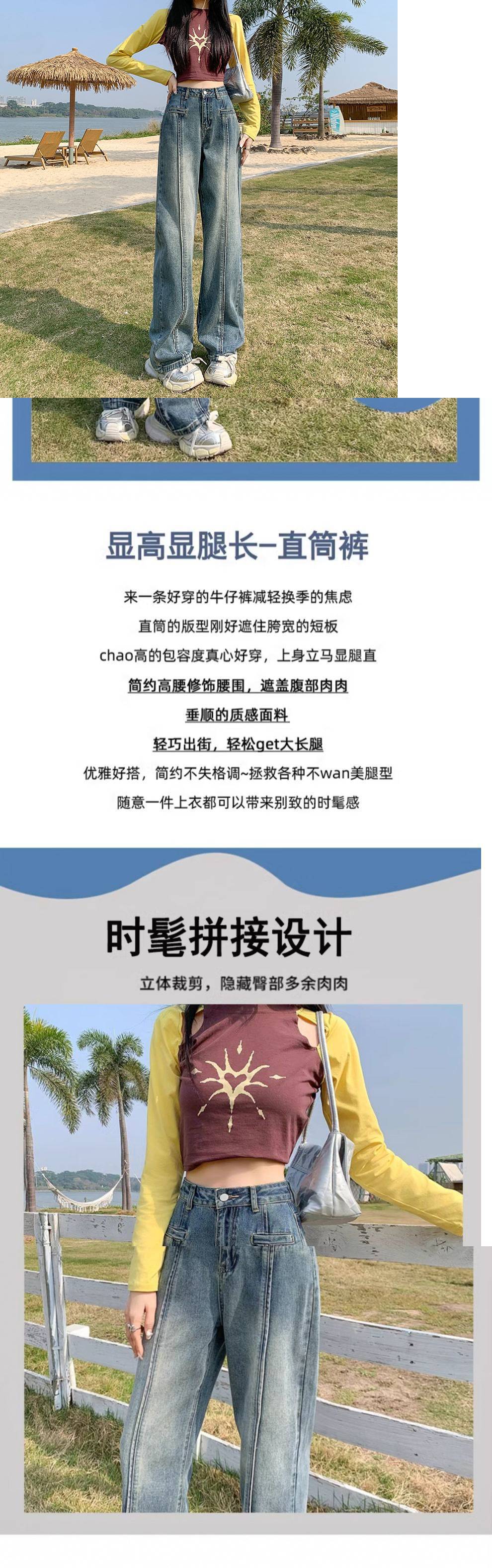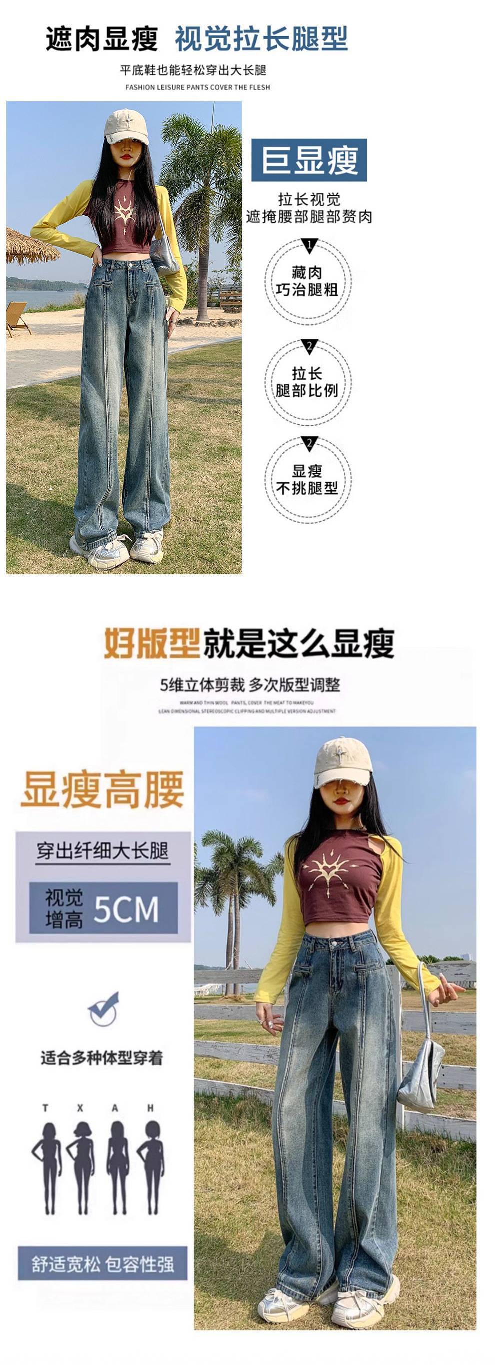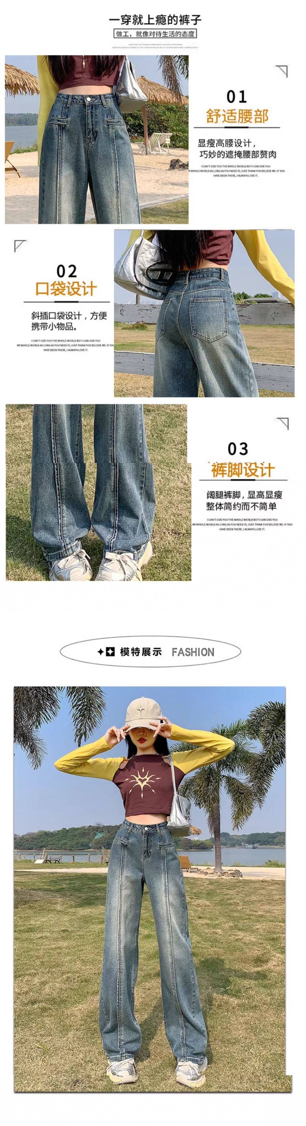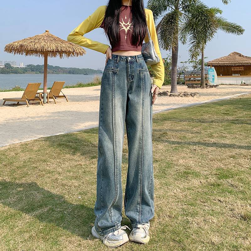 아메리칸 스타일 레트로 와이드 레그 청바지 여성의 2025 년 봄과 여름 새로운 높은 허리 슬리밍 스트레이트 느슨한 디자인 센스 걸레 바지스토어 가기