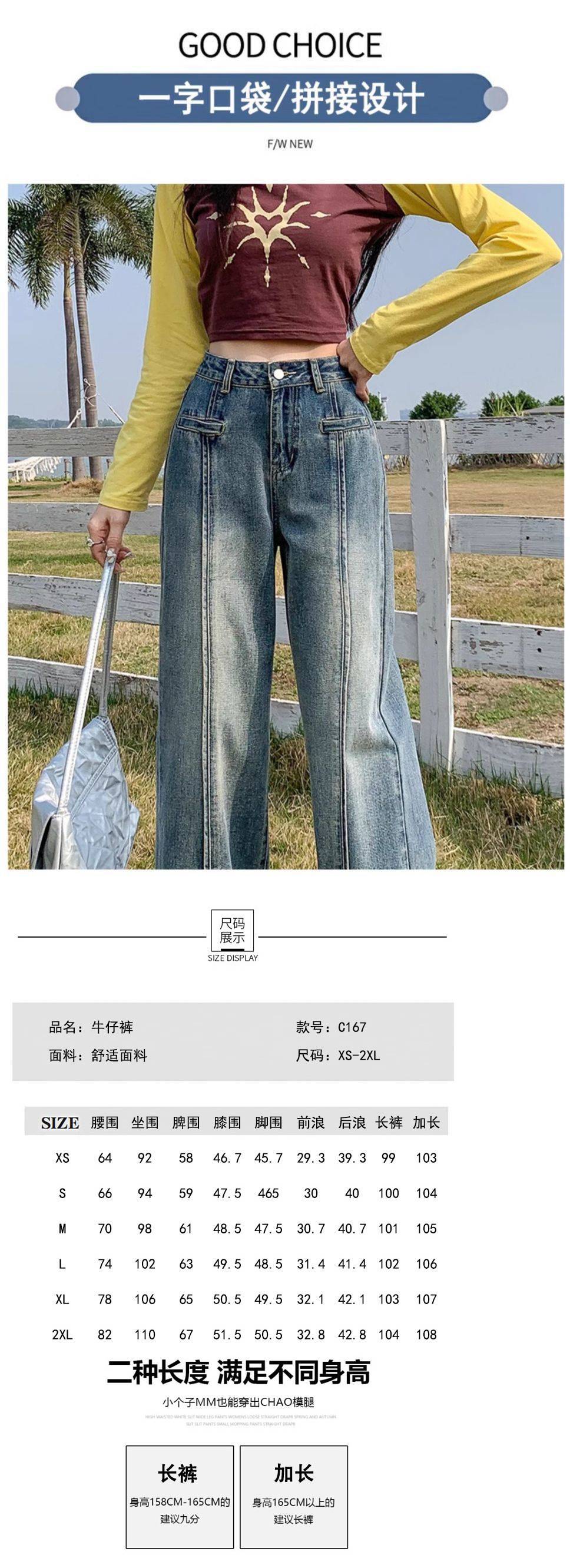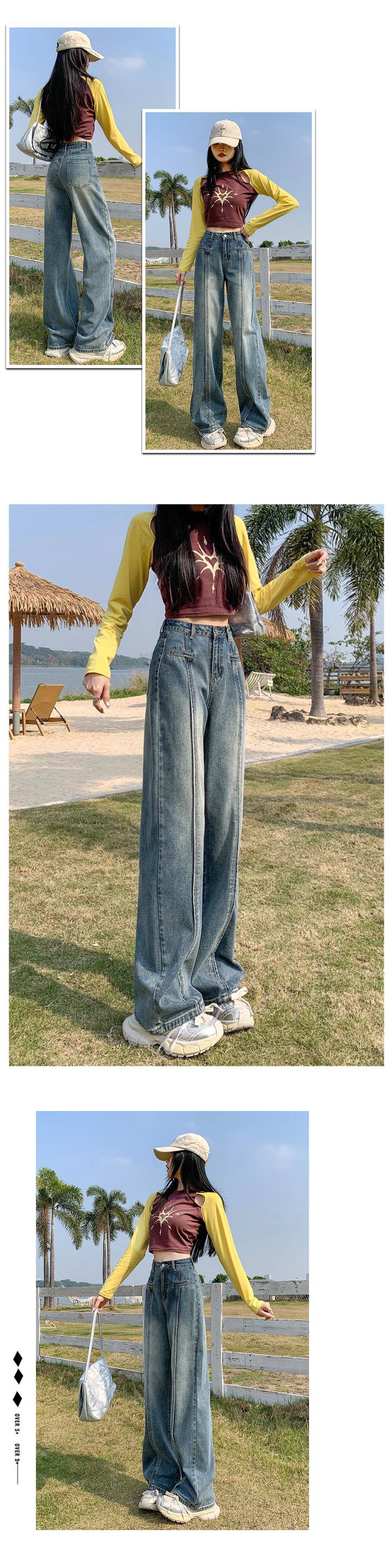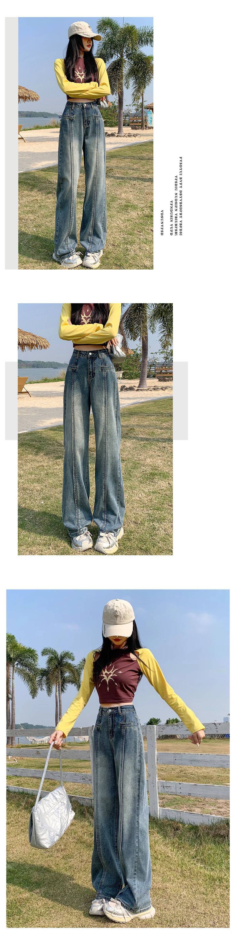 아메리칸 스타일 레트로 와이드 레그 청바지 여성의 2025 년 봄과 여름 새로운 높은 허리 슬리밍 스트레이트 느슨한 디자인 센스 걸레 바지스토어 가기