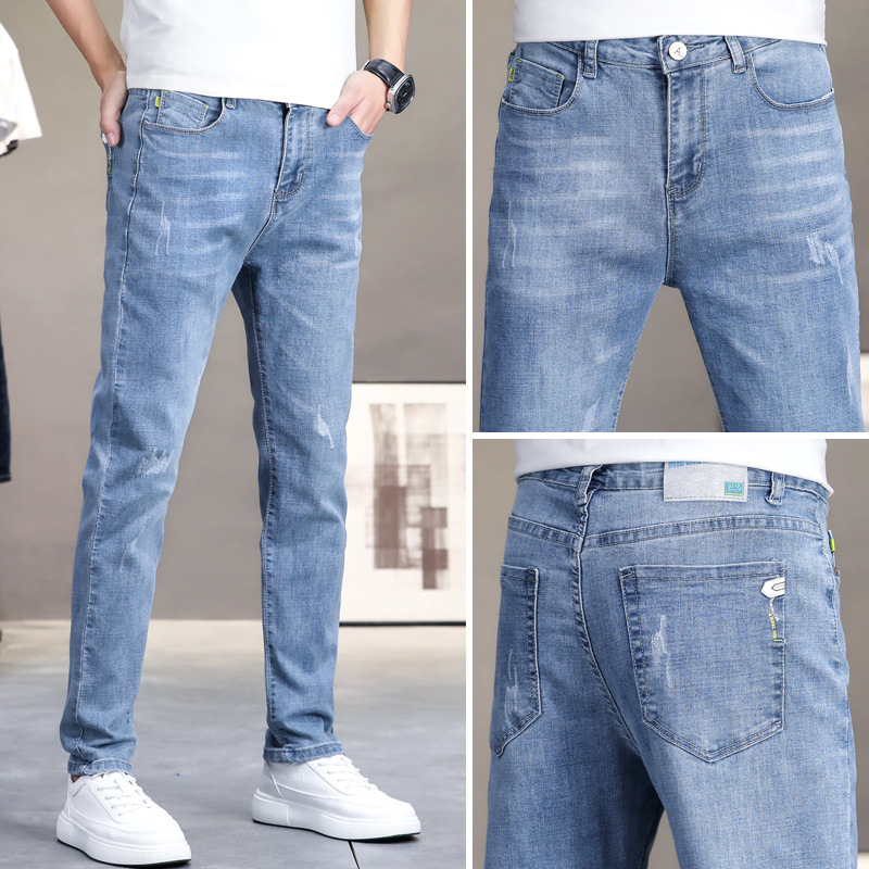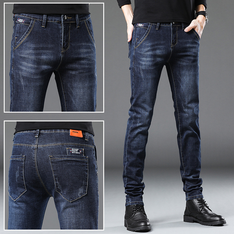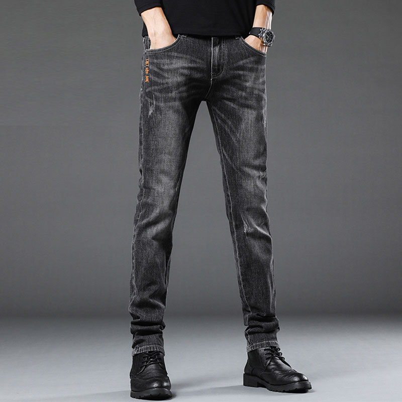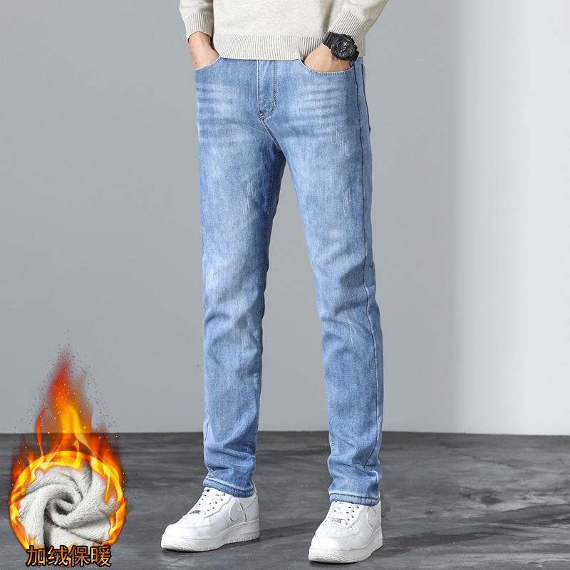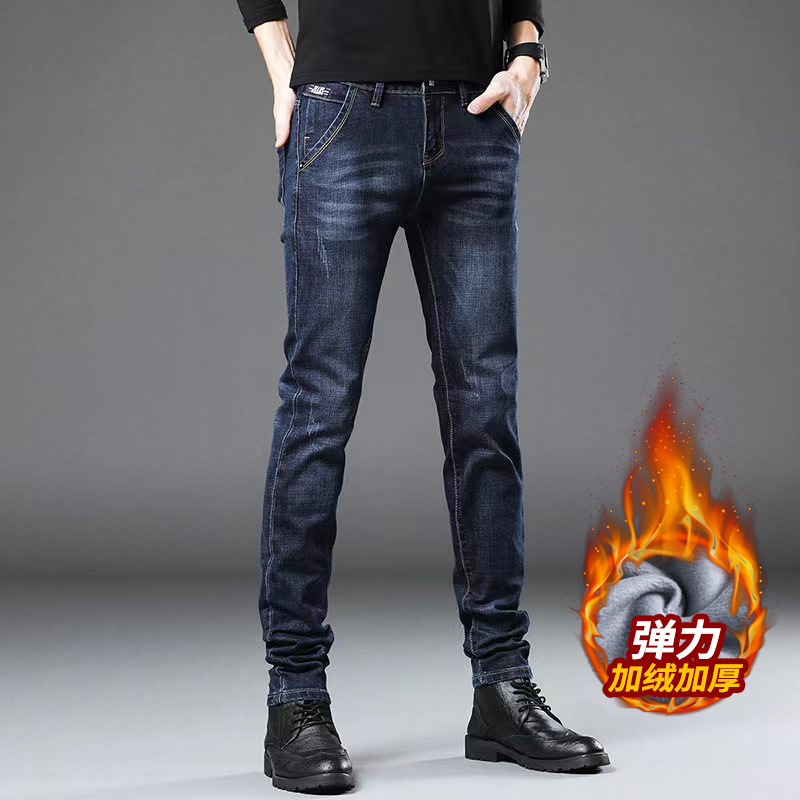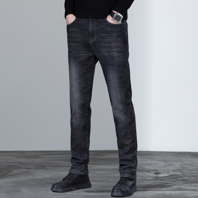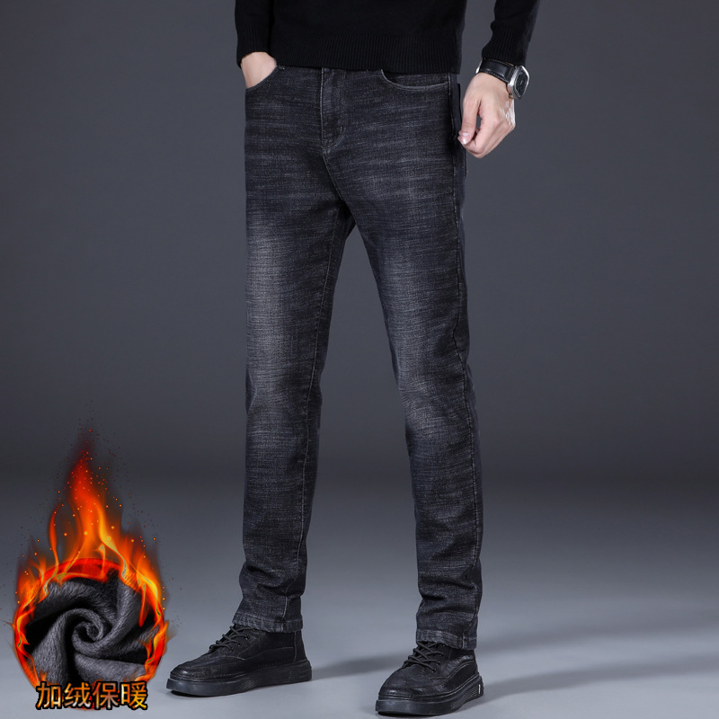 딱따구리 검은 청바지 남자 가을과 겨울 두꺼운 바지 한국 스타일 슬림핏 스키니 바지 남자 캐주얼 스트레이트 바지스토어 가기