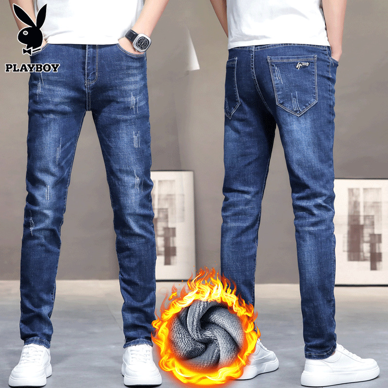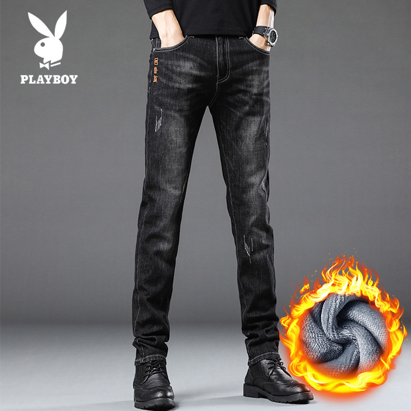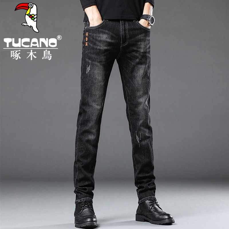 딱따구리 검은 청바지 남자 가을과 겨울 두꺼운 바지 한국 스타일 슬림핏 스키니 바지 남자 캐주얼 스트레이트 바지