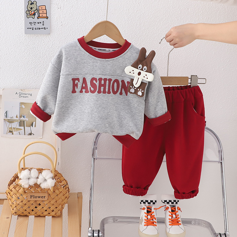 Yihao 아동복 소년 정장 가을 새로운 패션 유행 어린이 라운드 넥 운동복 편지 스타일 아기 옷