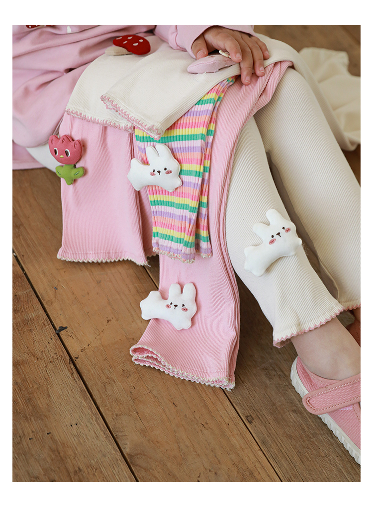 Wulibu 여성용 손바느질 인형 레이스 레깅스 2025 가을 귀여운 대비 색상 곡선 치아 캐주얼 팬츠 트렌디스토어 가기