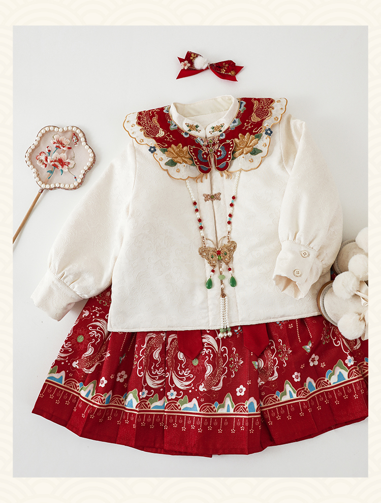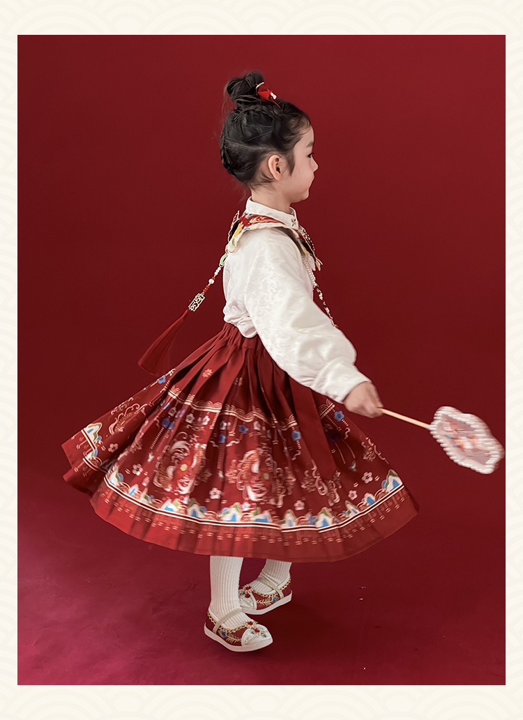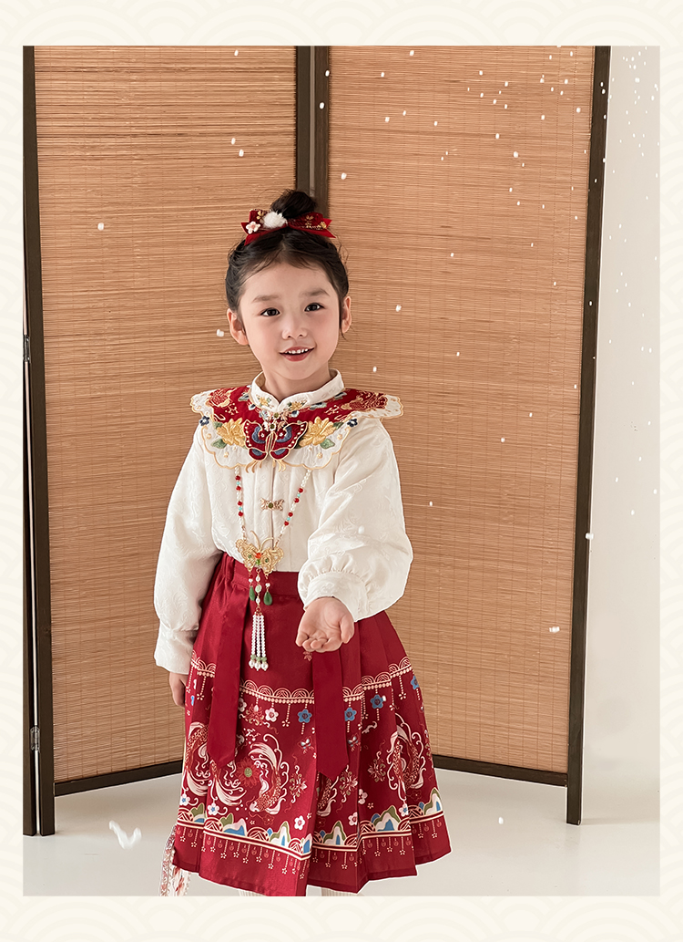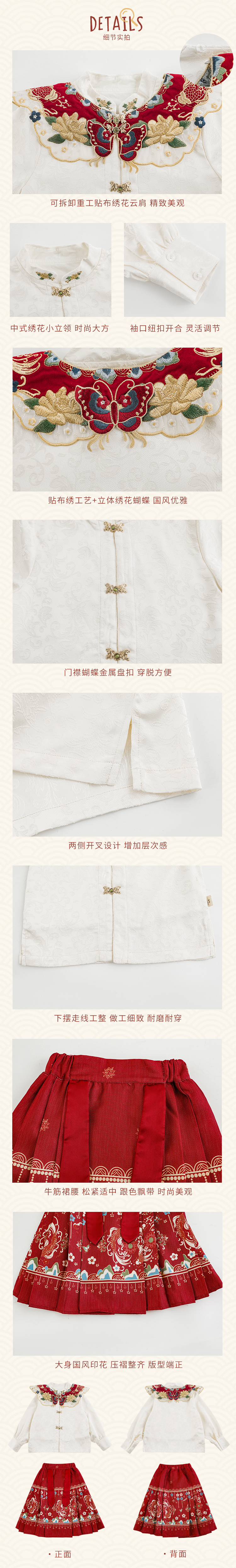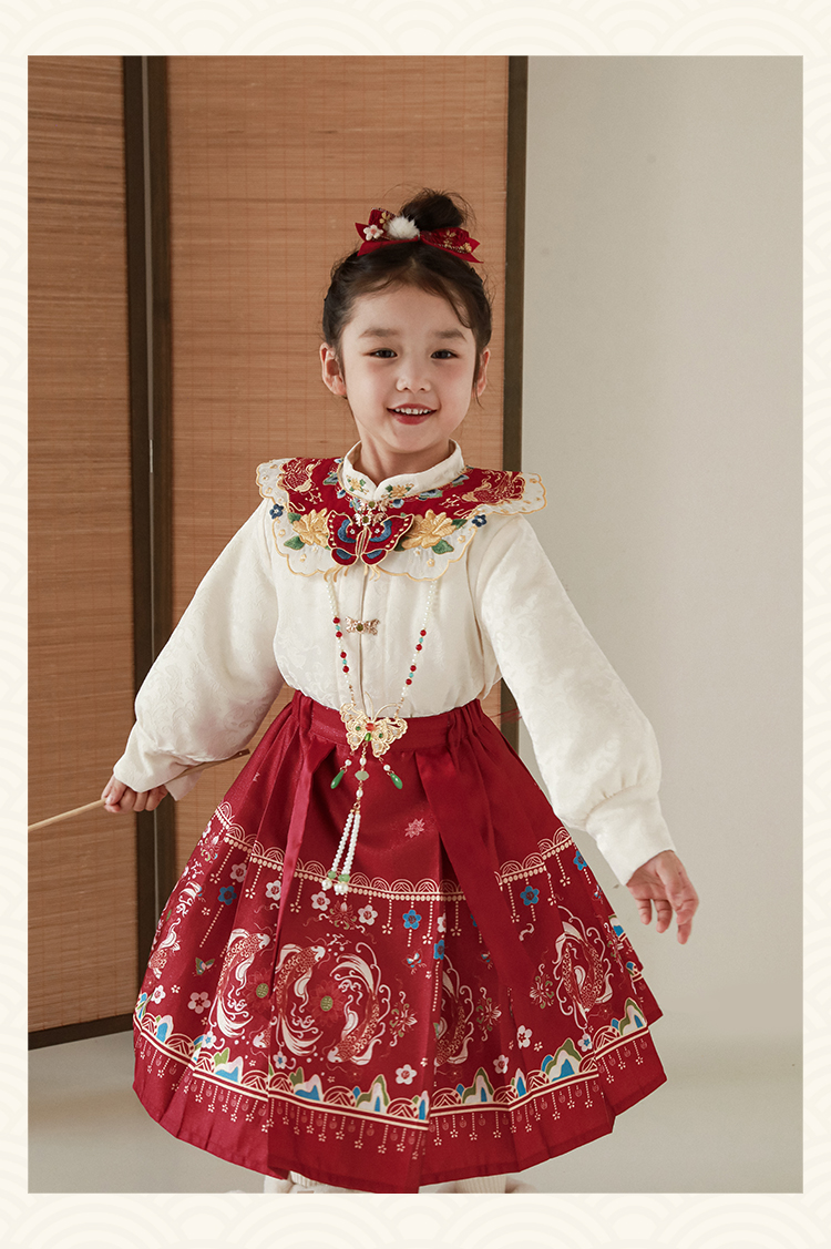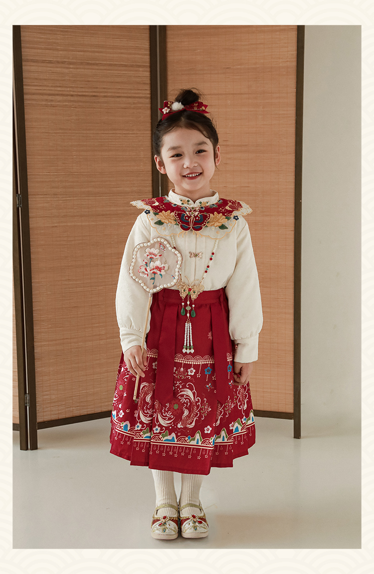 Wuli Buyi 소녀 Hanfu 정장 가을 달콤하고 귀여운 분리형 자수 구름 어깨 다층 주름 잉어 말 얼굴 스커트