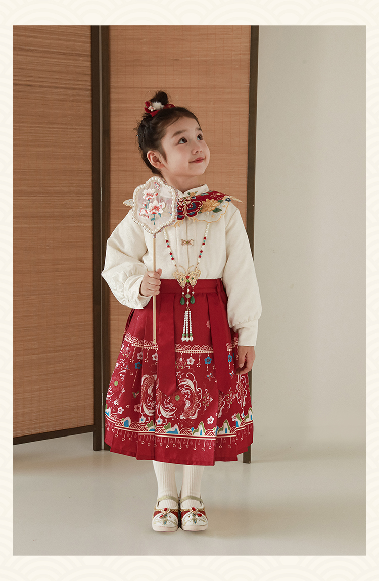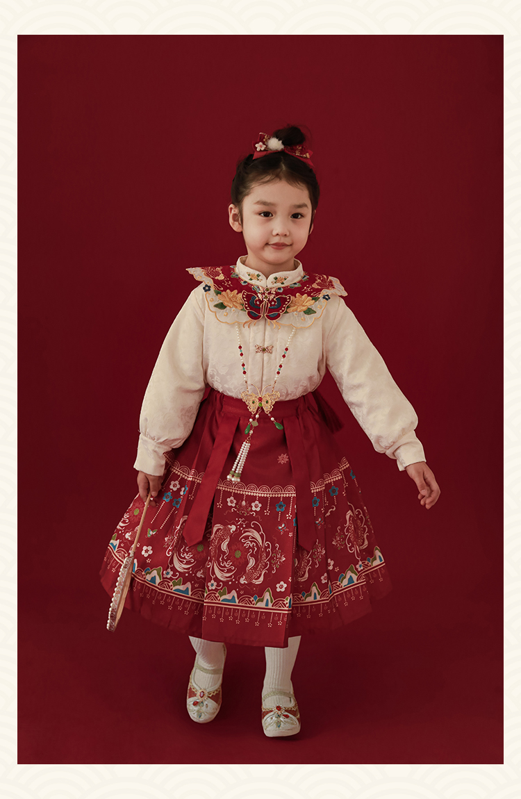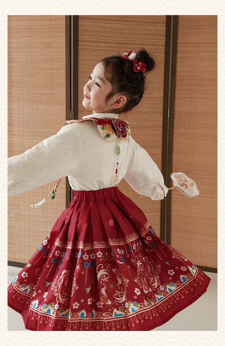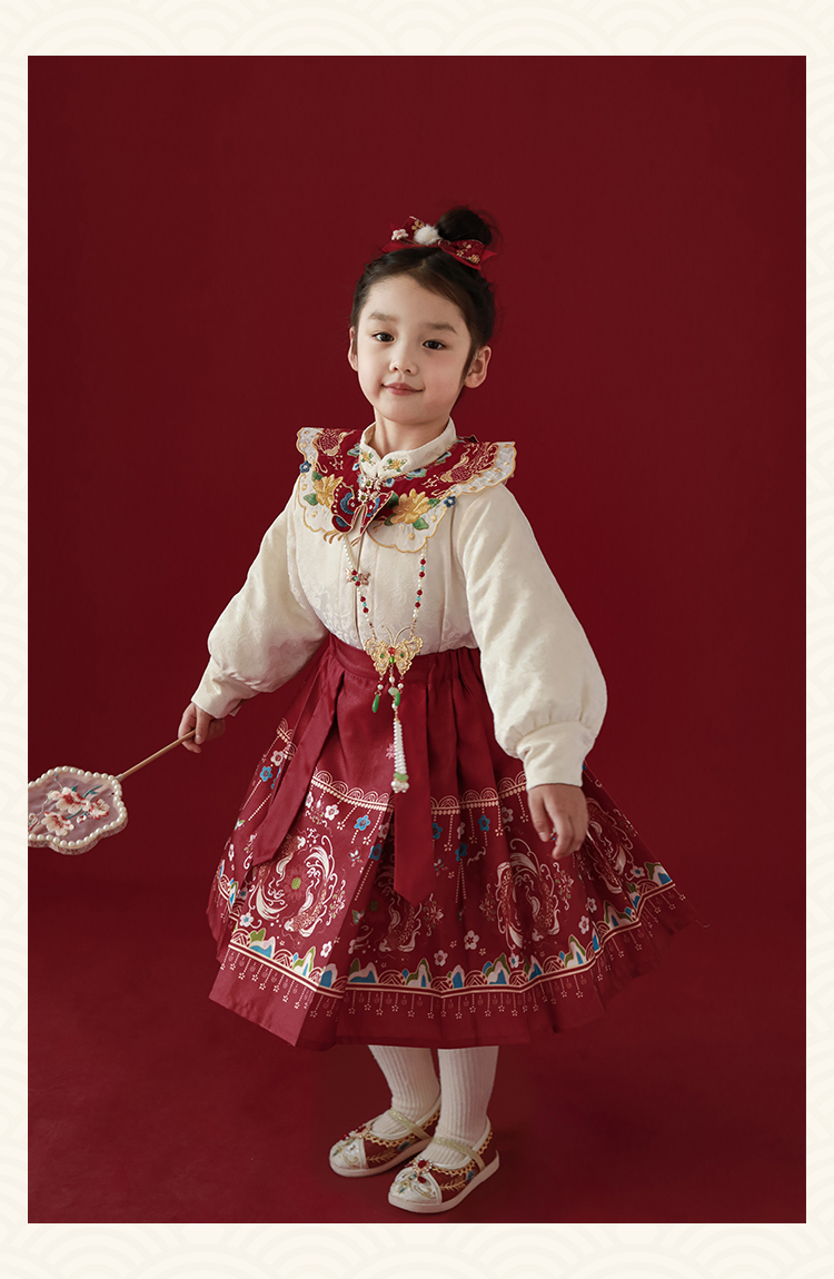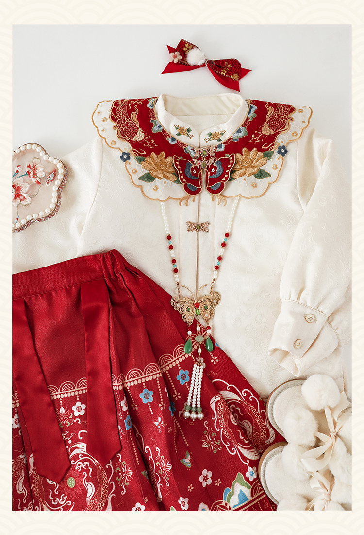 Wuli Buyi 소녀 Hanfu 정장 가을 달콤하고 귀여운 분리형 자수 구름 어깨 다층 주름 잉어 말 얼굴 스커트