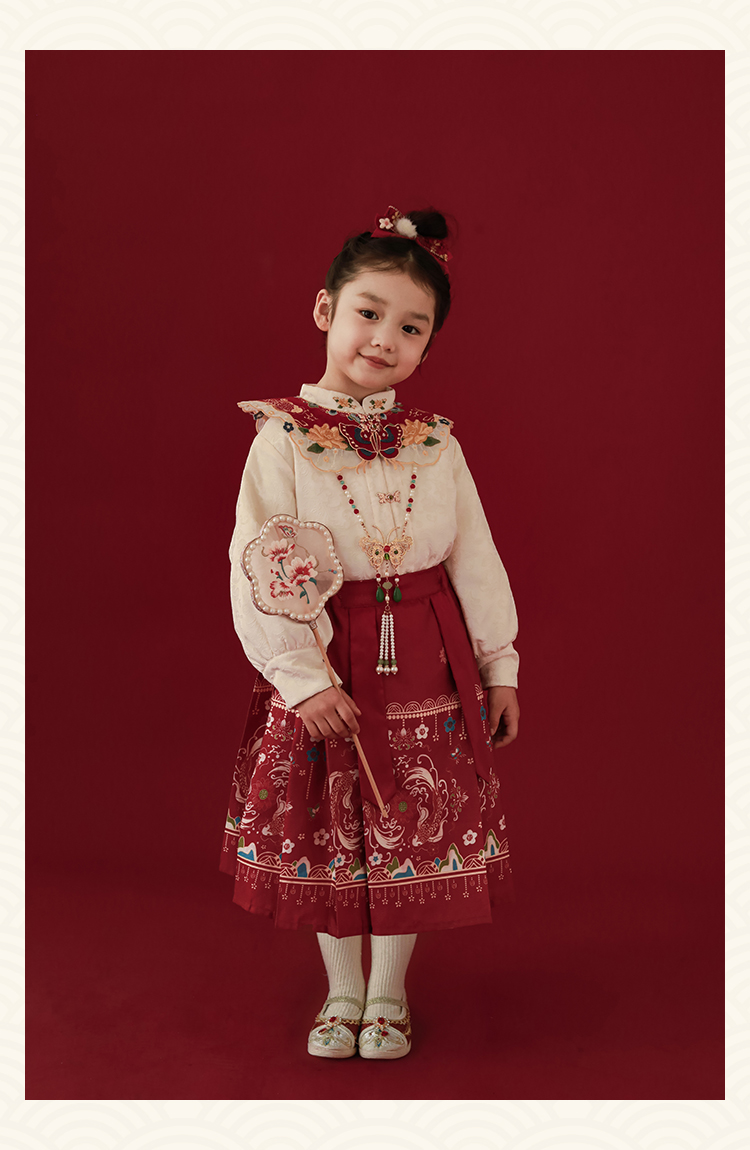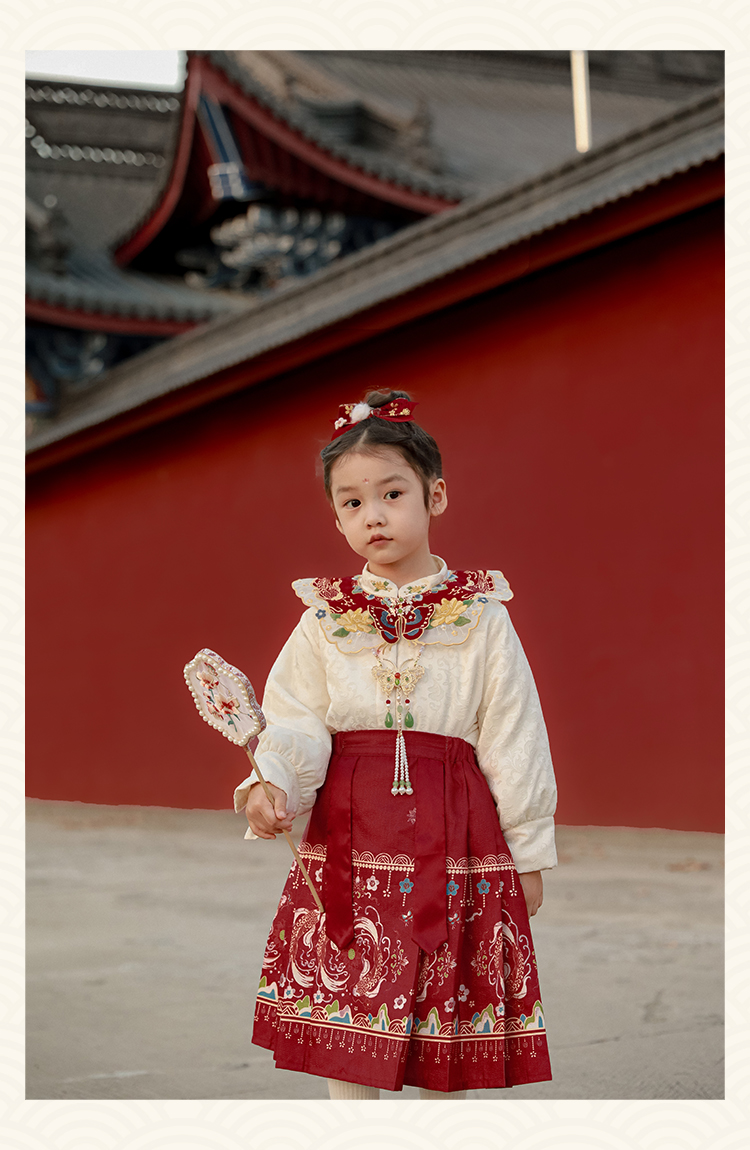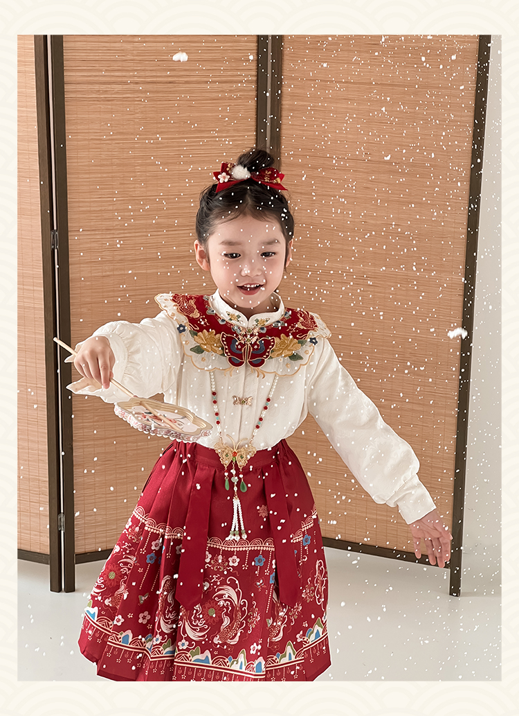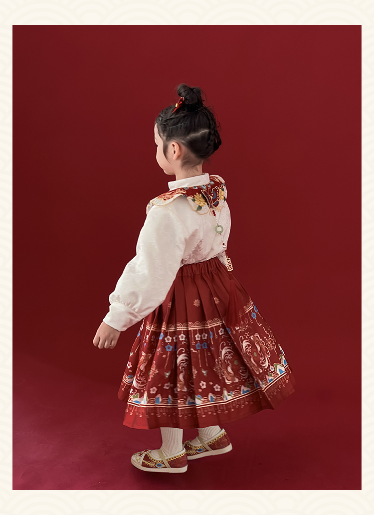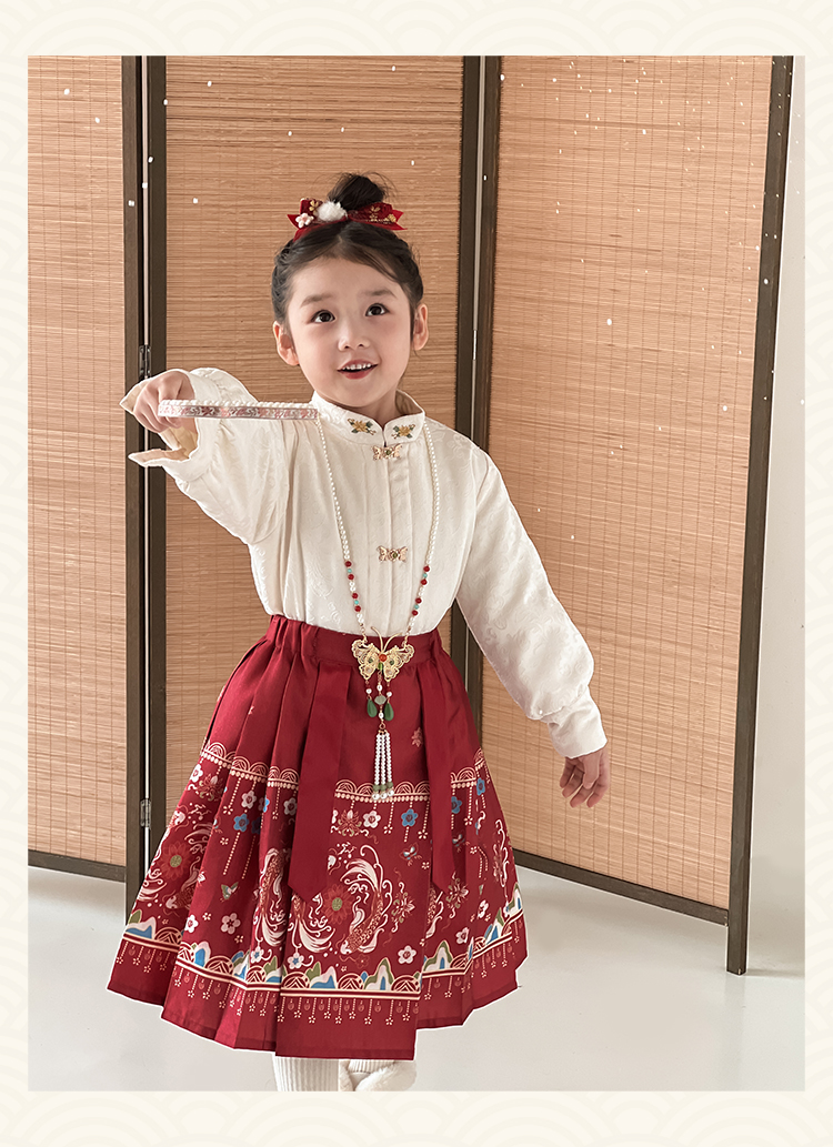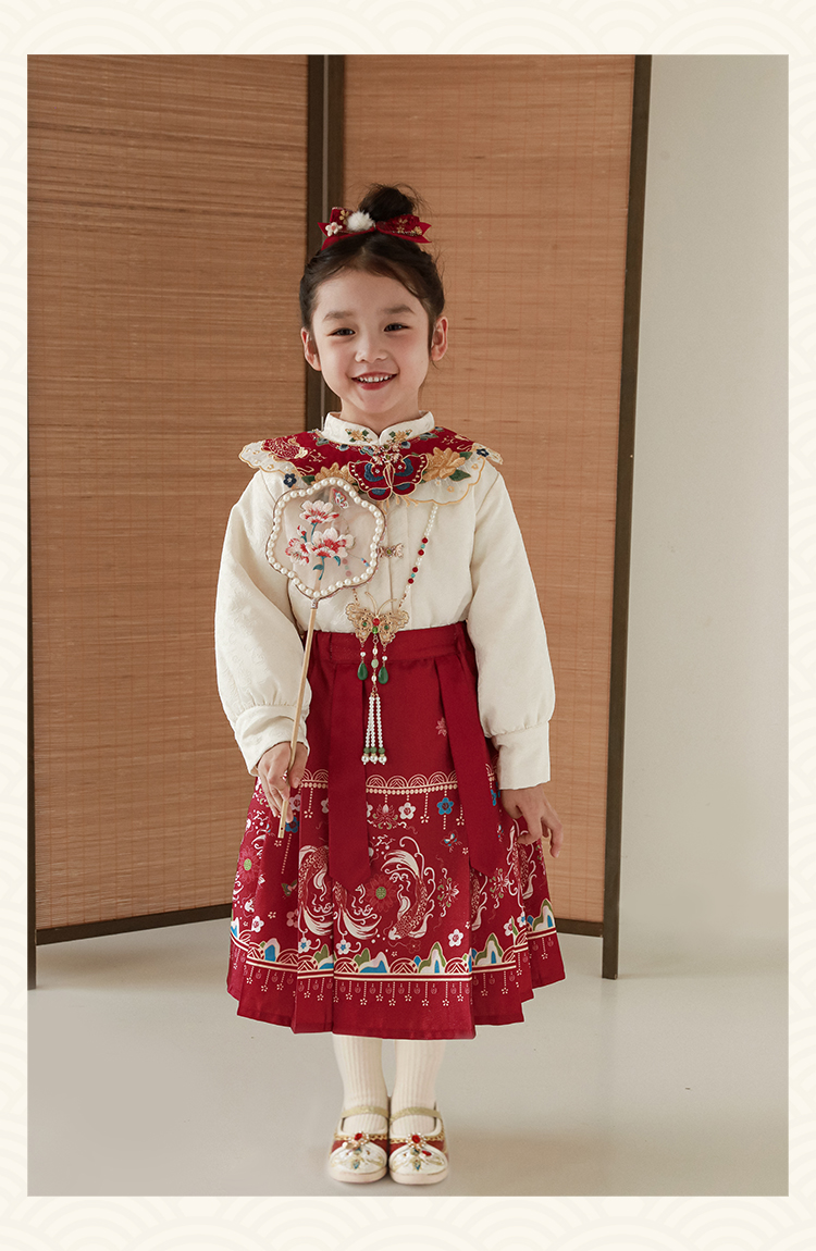 Wuli Buyi 소녀 Hanfu 정장 가을 달콤하고 귀여운 분리형 자수 구름 어깨 다층 주름 잉어 말 얼굴 스커트