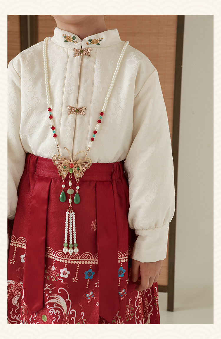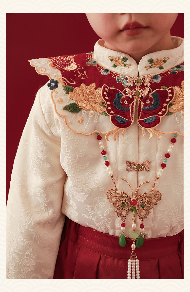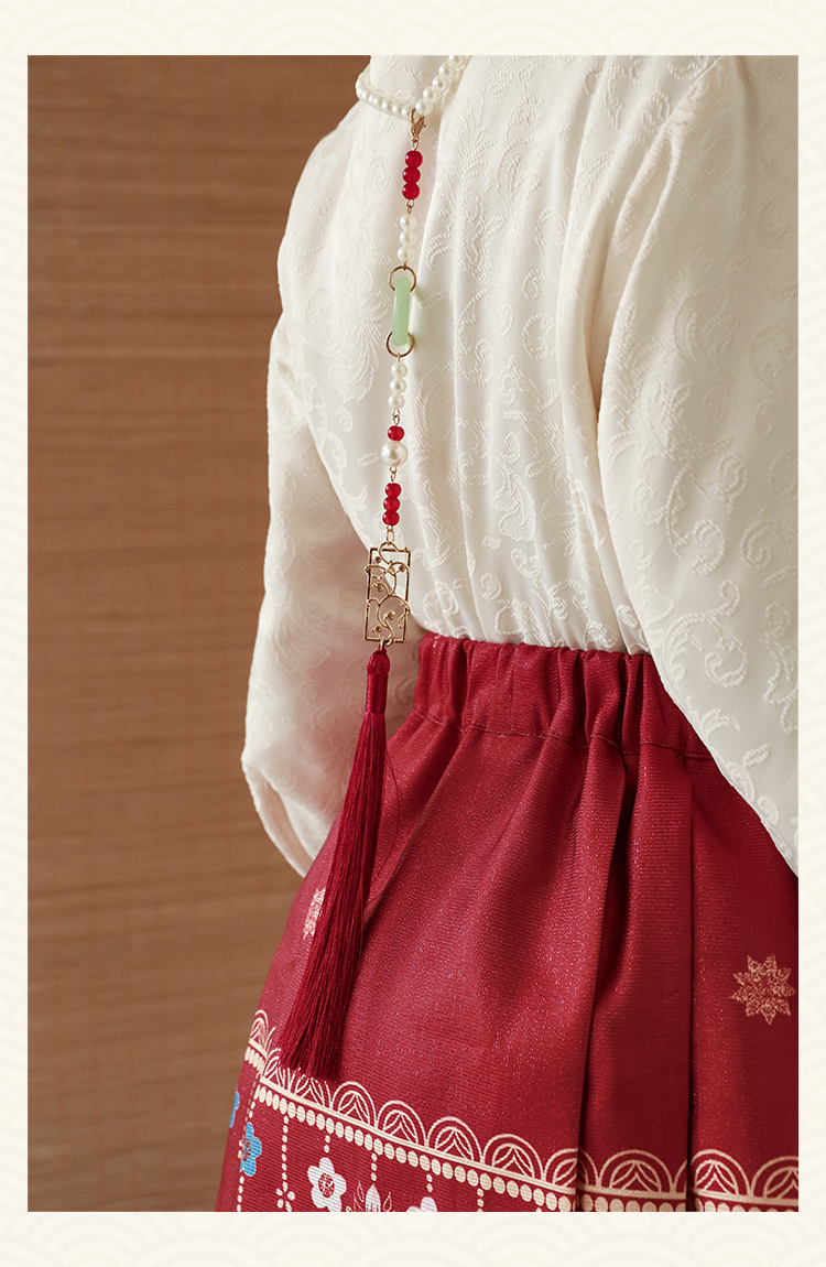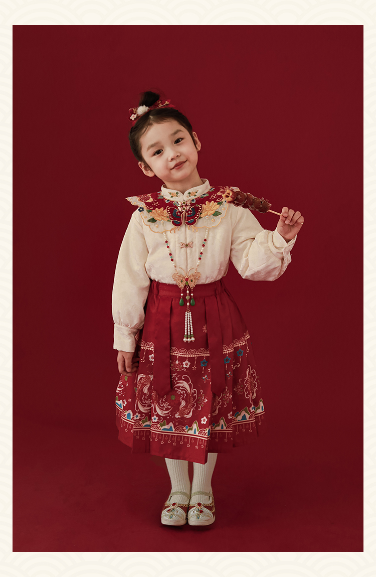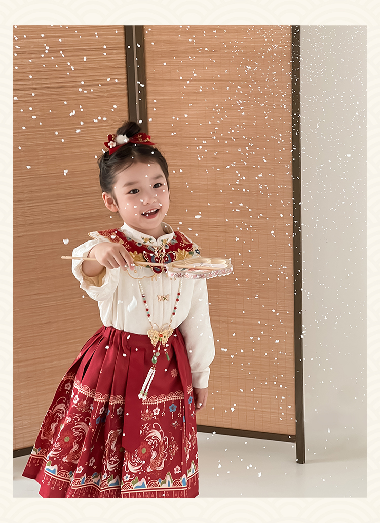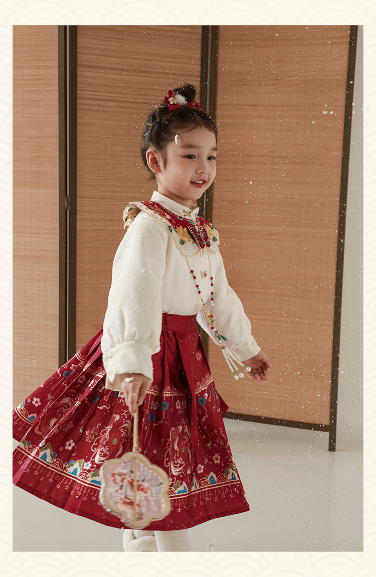 Wuli Buyi 소녀 Hanfu 정장 가을 달콤하고 귀여운 분리형 자수 구름 어깨 다층 주름 잉어 말 얼굴 스커트