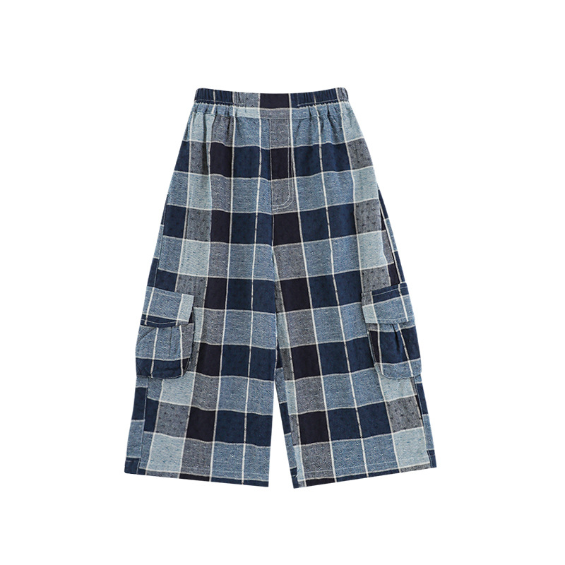 Wuri Boo Girl's Retro 예술적 원사 염색 격자 무늬 군중 바지 2025 봄 어린애 같은 귀여운 느슨한 넓은 다리 바지