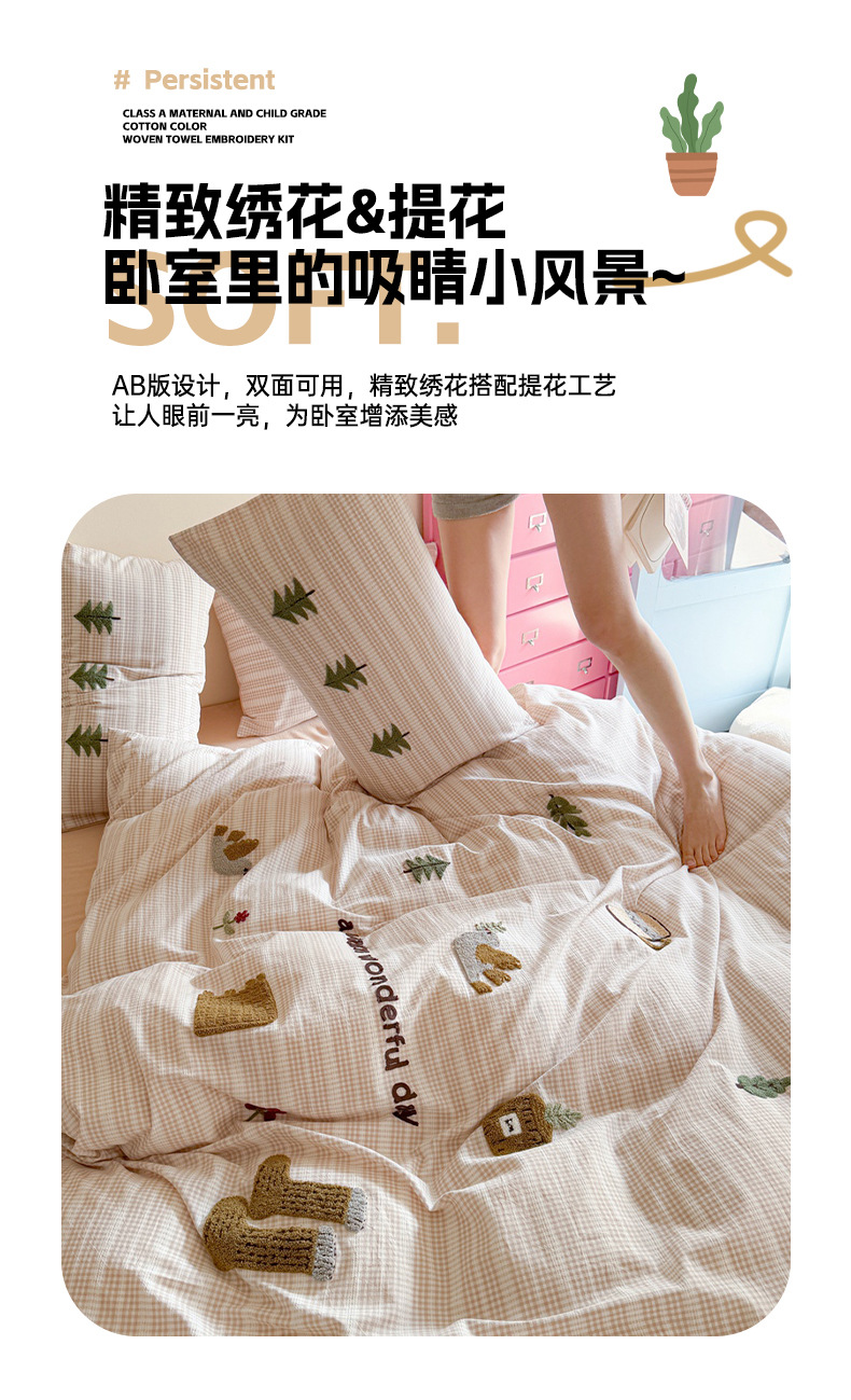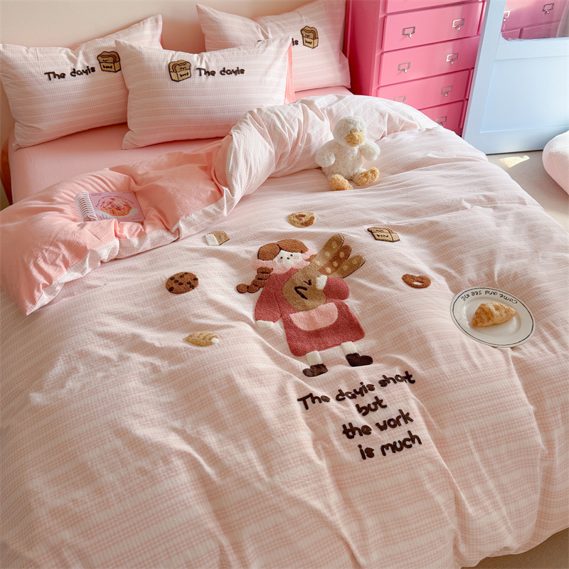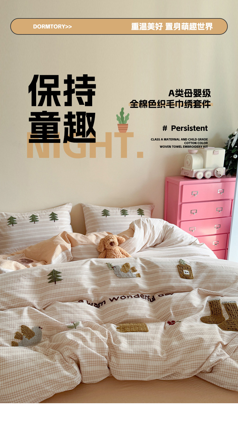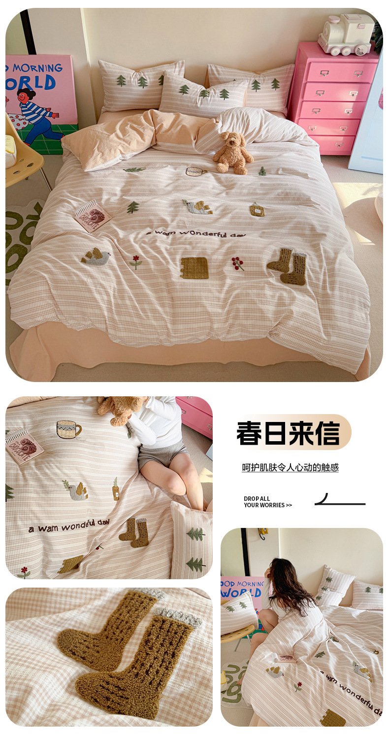 클래스 A, 원사 염색 타월 수 놓은 침구 4 피스 세트 코튼 학생 기숙사 침대 시트 3 피스 세트 코튼 이불 커버