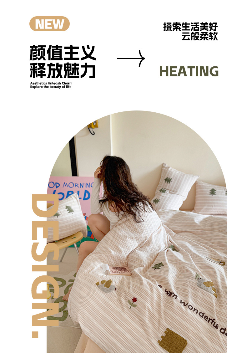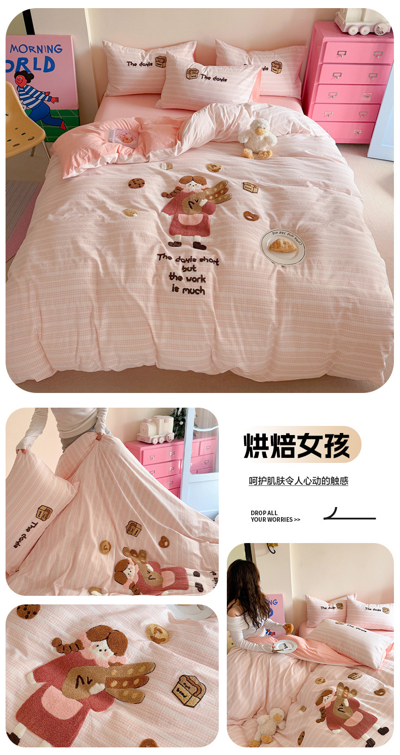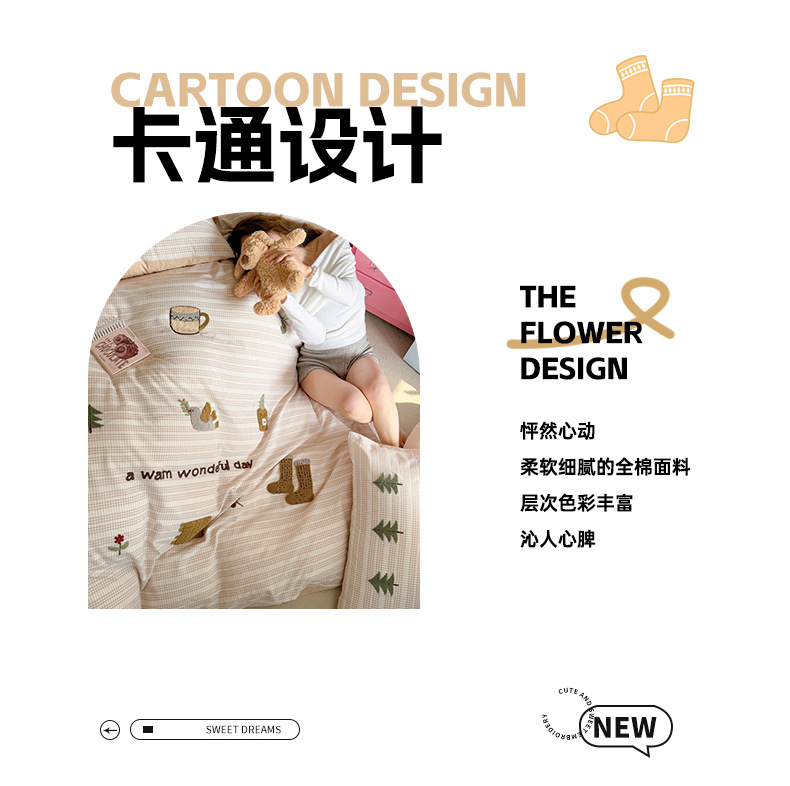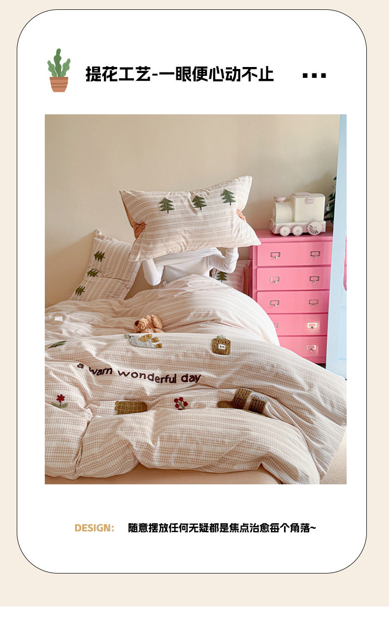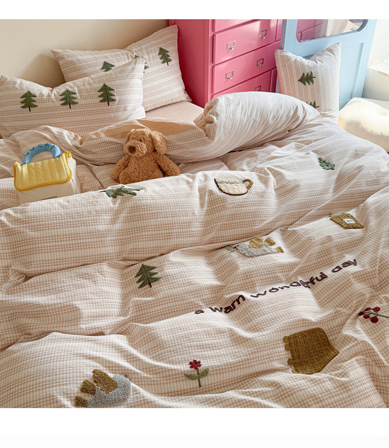 클래스 A, 원사 염색 타월 수 놓은 침구 4 피스 세트 코튼 학생 기숙사 침대 시트 3 피스 세트 코튼 이불 커버