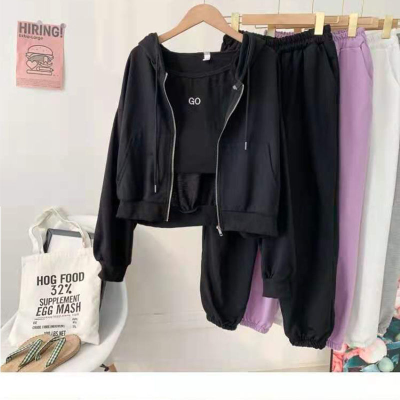 초가을 캐주얼 스포츠웨어 세트 여성의 봄과 가을 2024 유행 연령 감소 프라이드 스트리트 피트니스 발 바지 3 피스 세트스토어 가기
