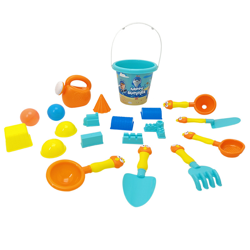 국경 간 인기 판매 어린이 해변 양동이 20피스 세트 아기 물놀이 모래 파기 도구 삽 해변 양동이 물놀이