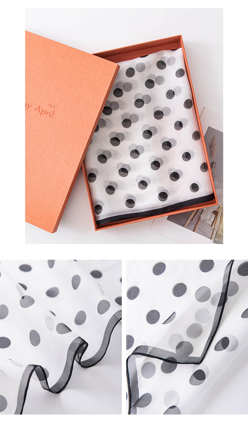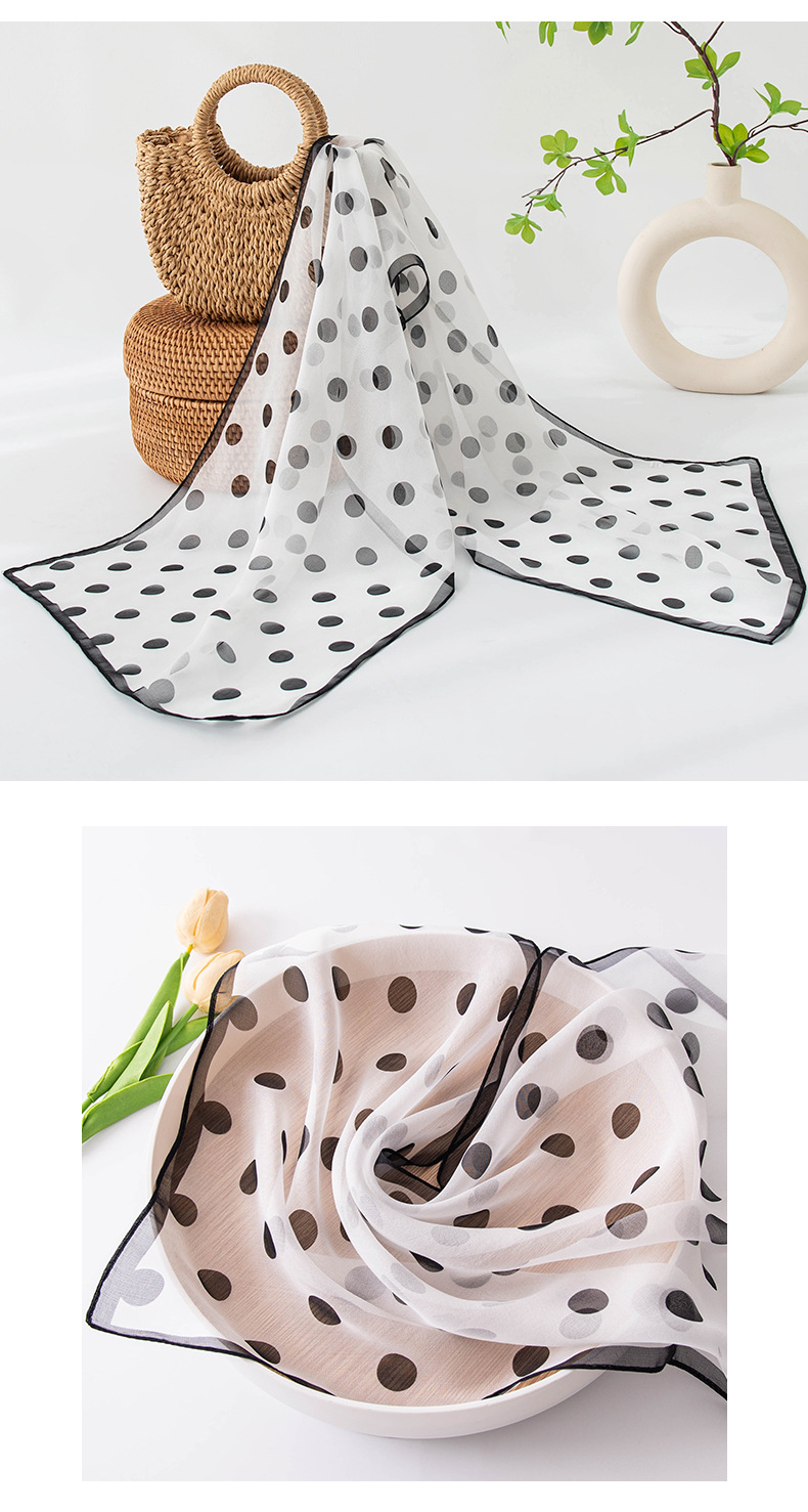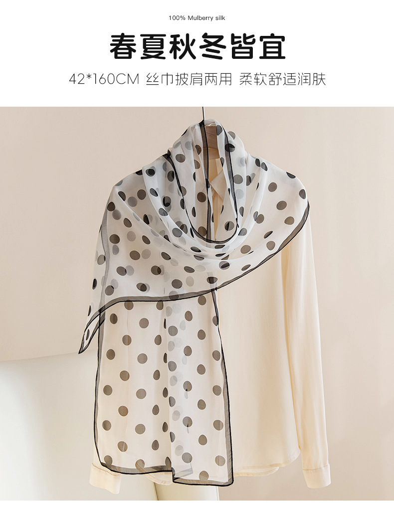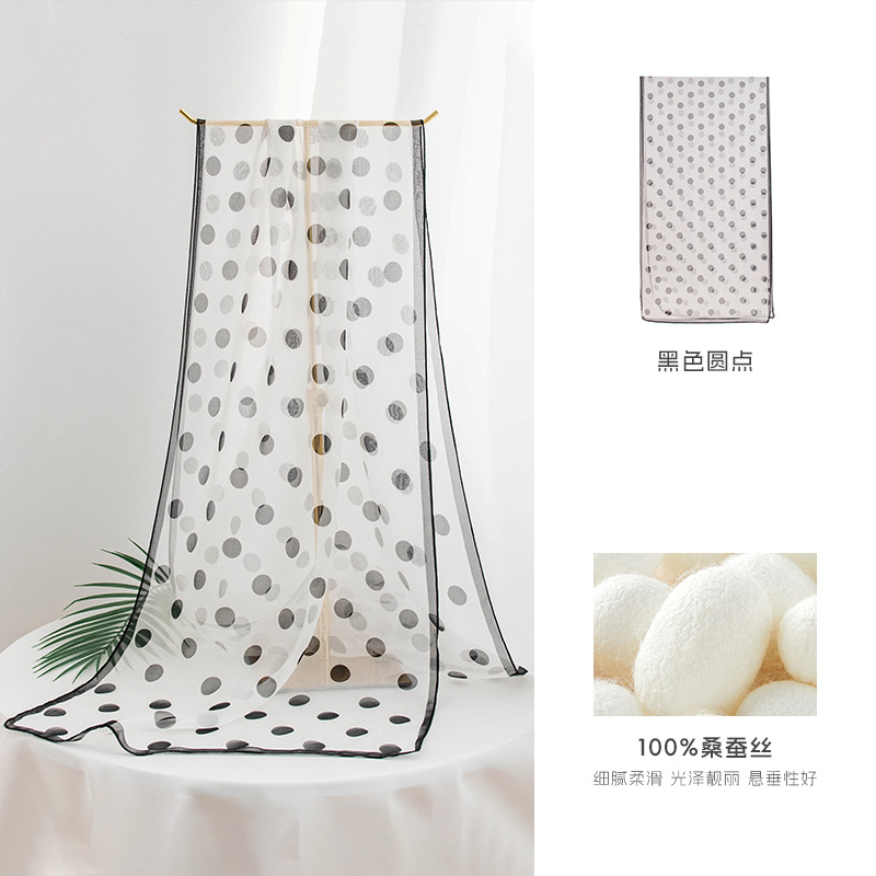 고급 프랑스산 실크 스카프, 블랙 도트 무늬 실크 스카프, 여성용 롱 실크 스카프, 고급스러운 느낌의 스카프/숄, 얇은 봄/여름용스토어 가기