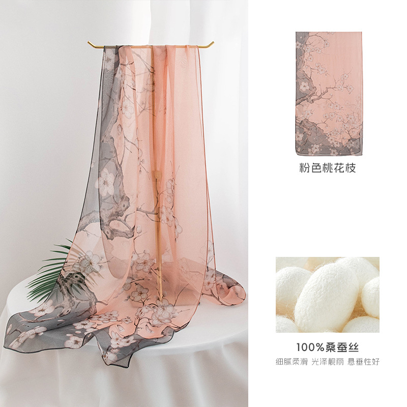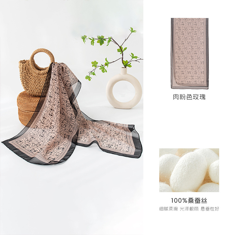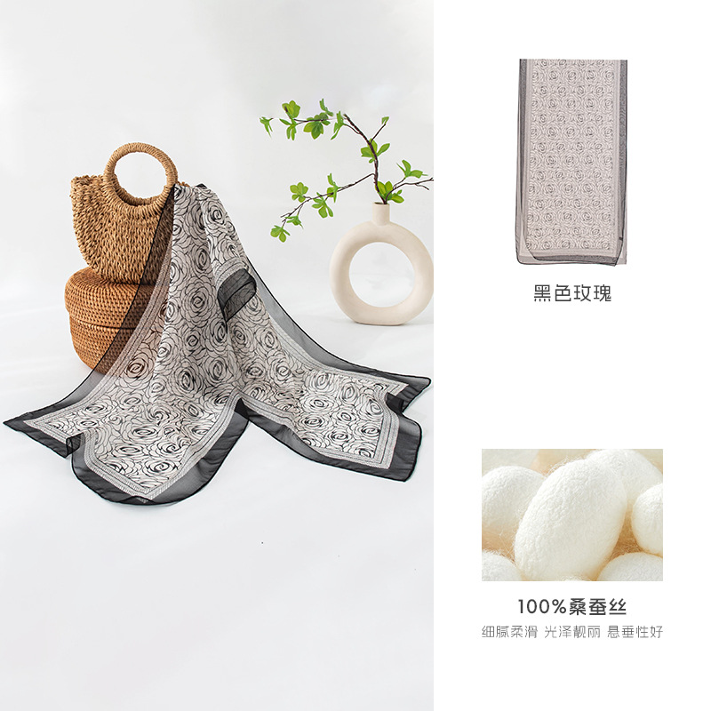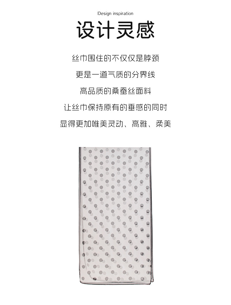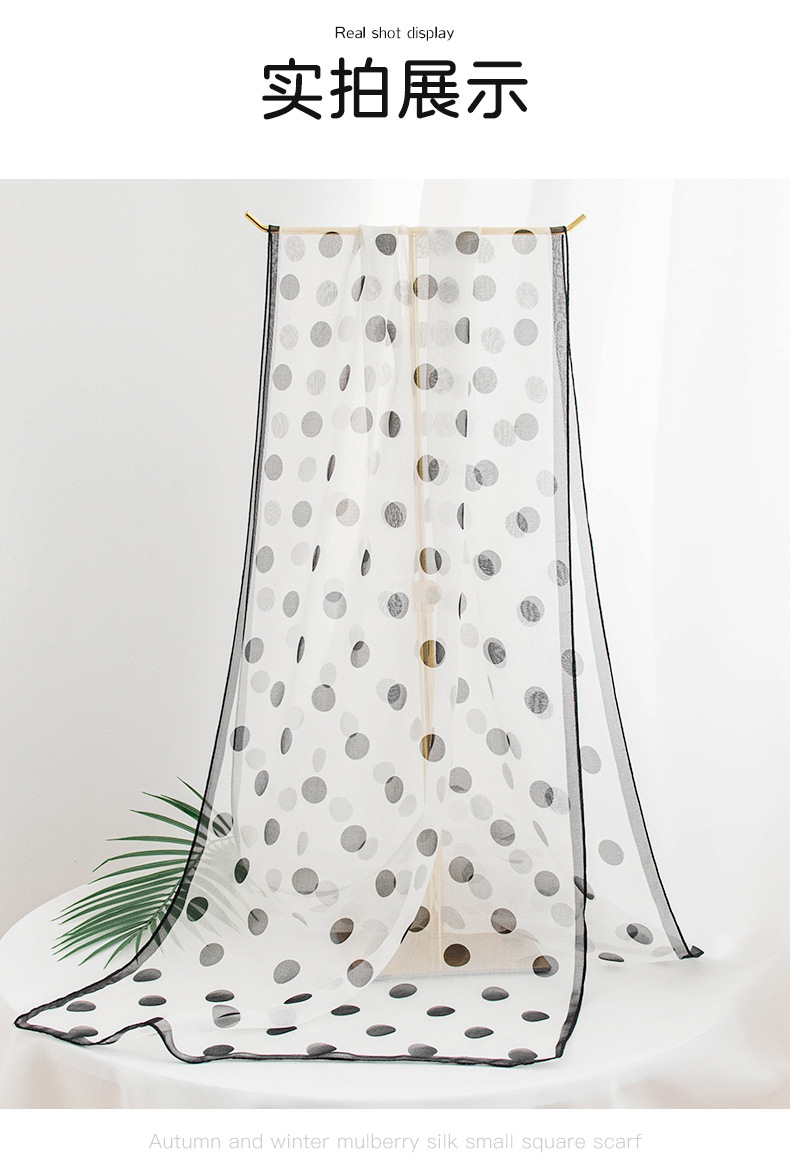 고급 프랑스산 실크 스카프, 블랙 도트 무늬 실크 스카프, 여성용 롱 실크 스카프, 고급스러운 느낌의 스카프/숄, 얇은 봄/여름용스토어 가기