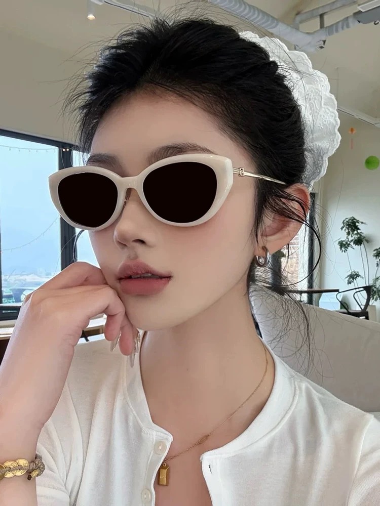 빈티지 고양이 눈 선글라스 여성 트렌디 2025 새로운 하이 레벨 거리 사진 촬영 안티-UV 스퀘어 얼굴 슬리밍 선글라스