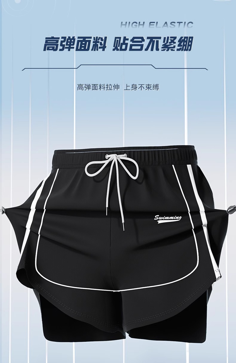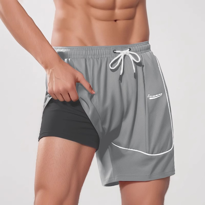 수영 트렁크 남자 5 점 방황 2025 새로운 빠른 건조 전문 비치 바지 플러스 사이즈 더블 레이어 수영복 도매