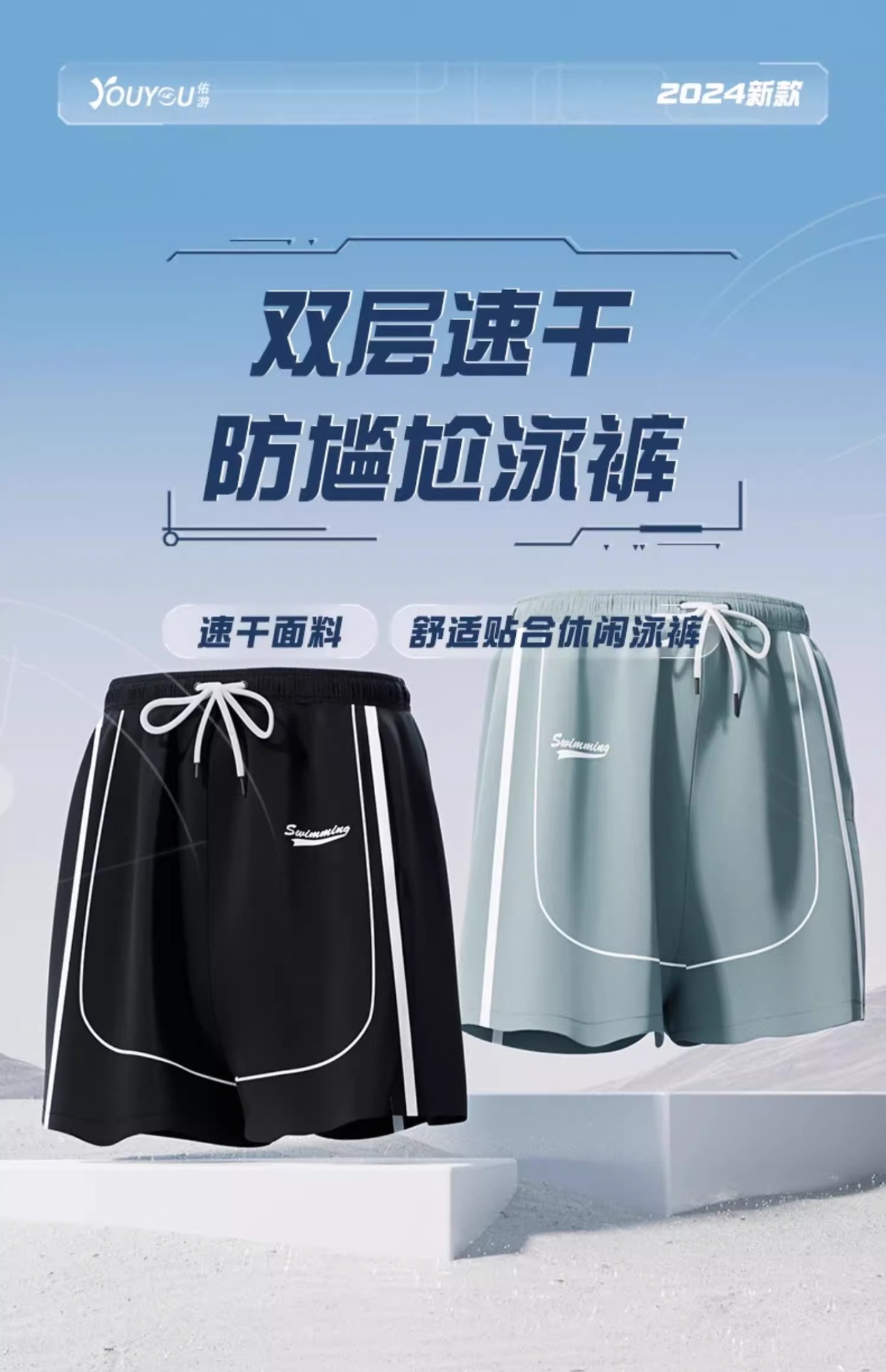 수영 트렁크 남자 5 점 방황 2025 새로운 빠른 건조 전문 비치 바지 플러스 사이즈 더블 레이어 수영복 도매스토어 가기