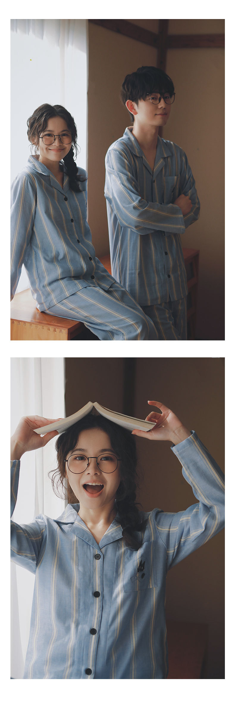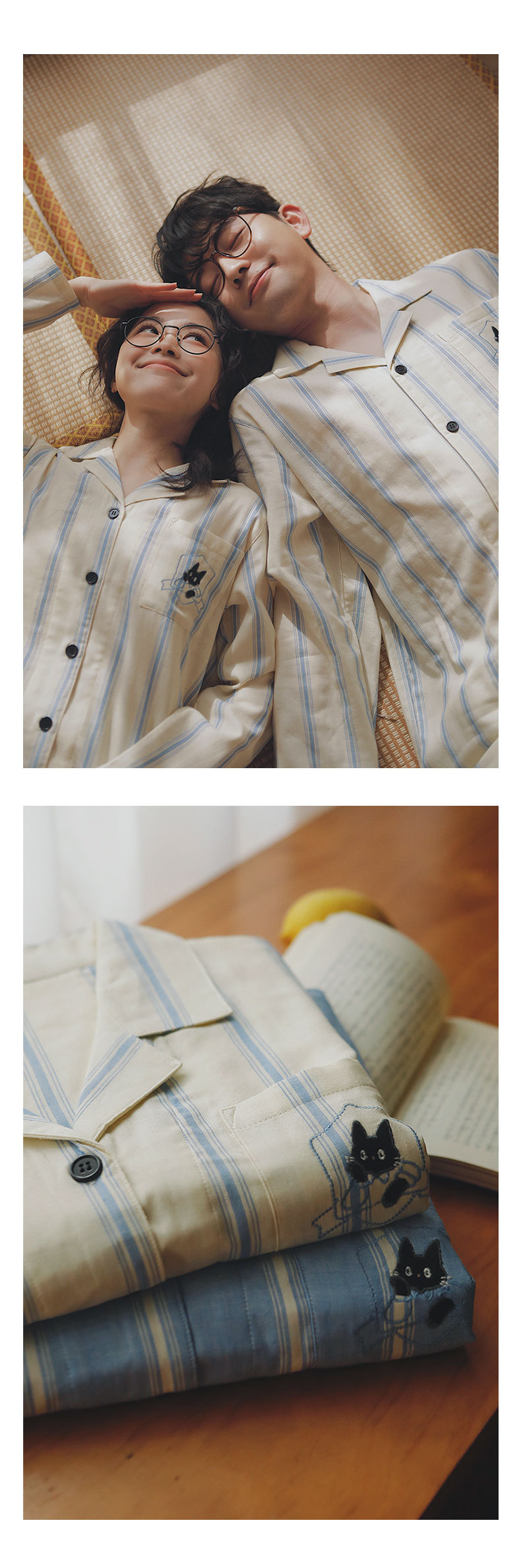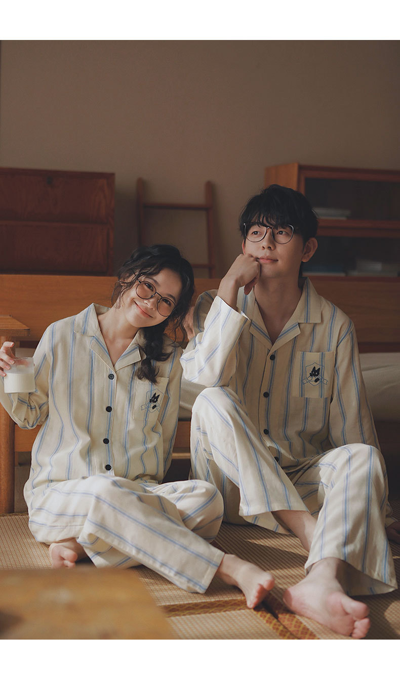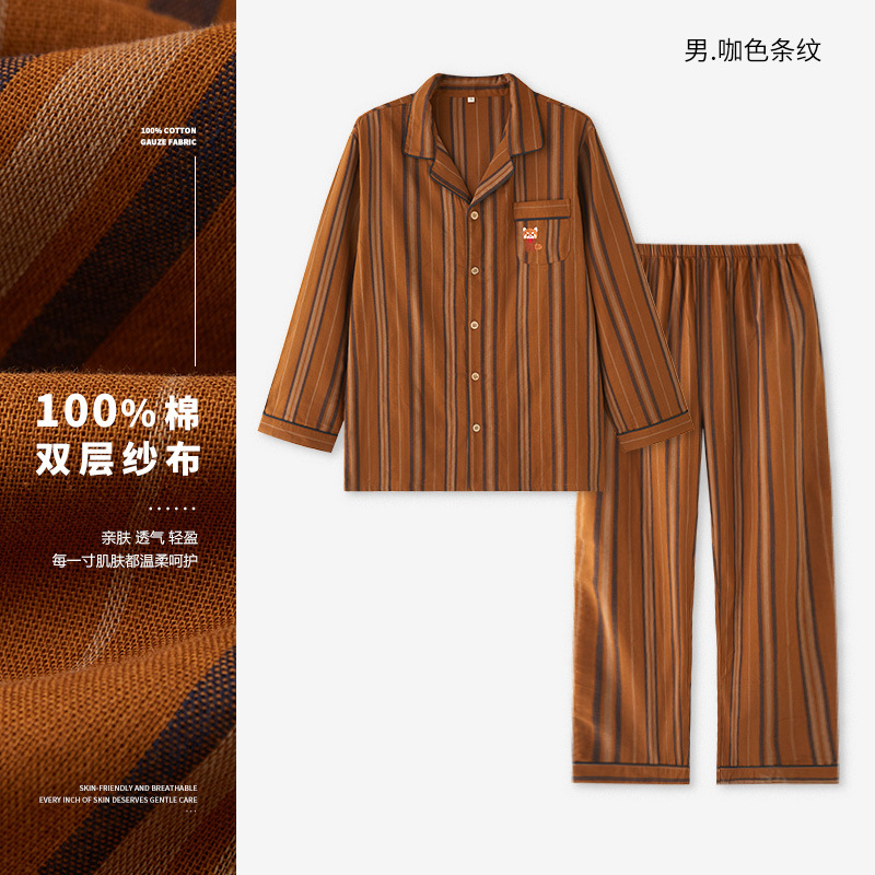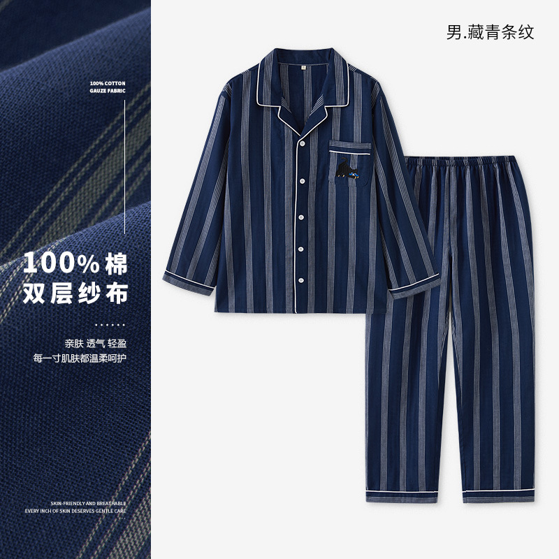 맑고 편안한 커플 잠옷 남성용 봄 가을 긴팔 세트 여성용 순면 거즈 홈웨어 여름스토어 가기